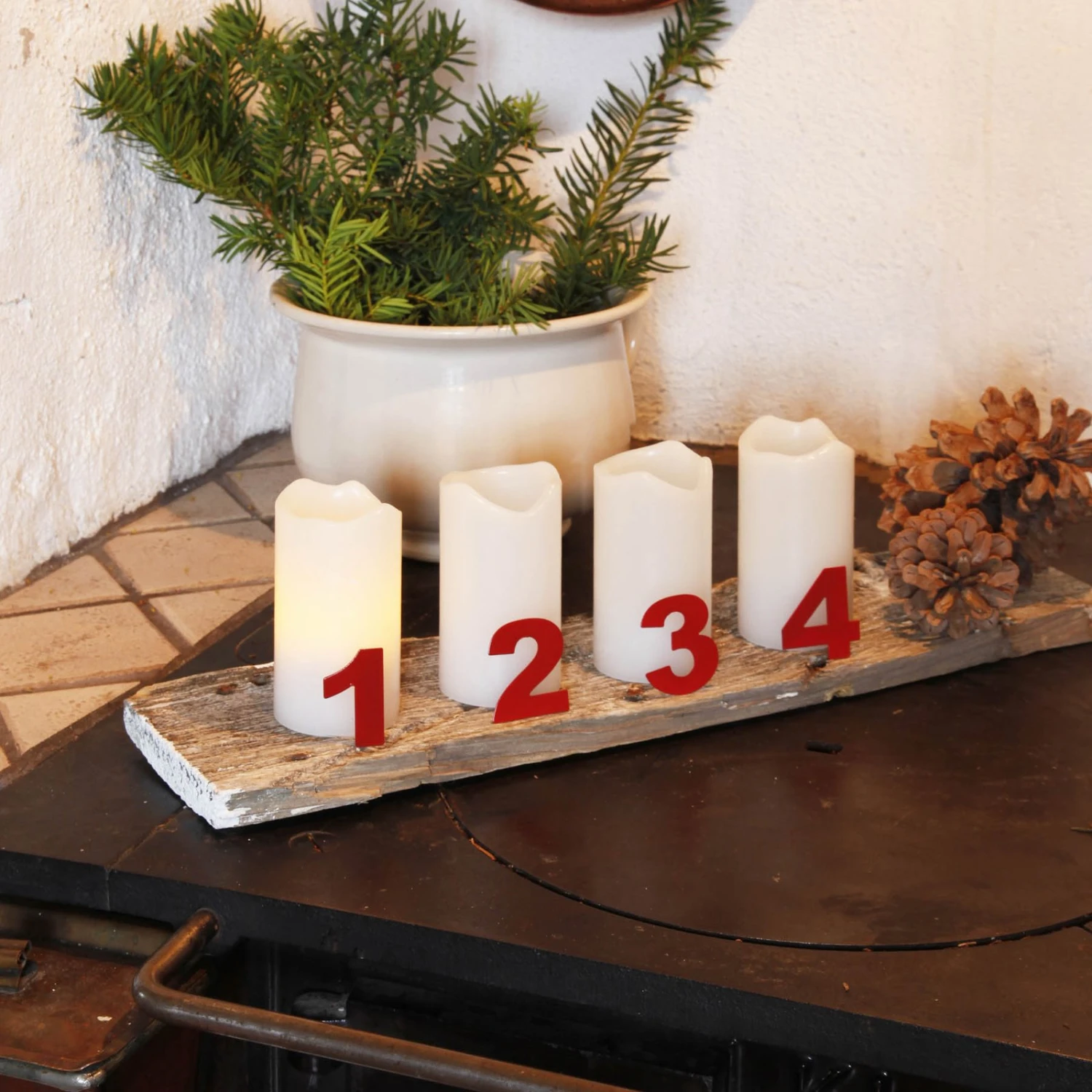 Kerzen erzeugen eine zauberhafte Stimmung. Mit Gefahren verbunden sind sie gleichwohl. Adventskränze geraten leicht in Brand. Kinder können die Wirkung von offenem Feuer nicht immer richtig einschätzen. Eine sichere und zugleich stimmungsvolle Alternative bietet das LED-Kerzenset Candle. Die LED-Lämpchen sind in vier Kerzenhüllen aus echtem Wachs integriert. Optisch wirken die LED-Leuchten haargenau wie tief brennende Kerzen. Insbesondere zur Weihnachtszeit lassen sich mit dem Kerzenset Adventskränze dekorieren. Auch öffentliche Einrichtungen wie Seniorenheime oder Kindertagesstätten können damit gefahrlos in atmosphärische Kerzenlichtstimmung versetzt werden. Besonderer Vorteil: Die batteriebetriebenen LED-Kerzen sind per Fernbedienung steuerbar. Die CR2032 Knopfbatterien sind im Lieferumfang enthalten