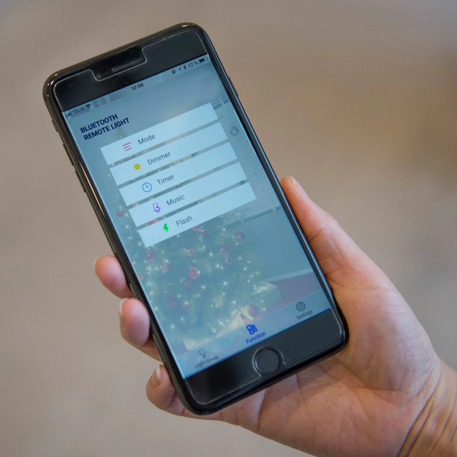 – Blitz: gleichmäßiges oder variables Licht der Lichterkette/n wählbar.
