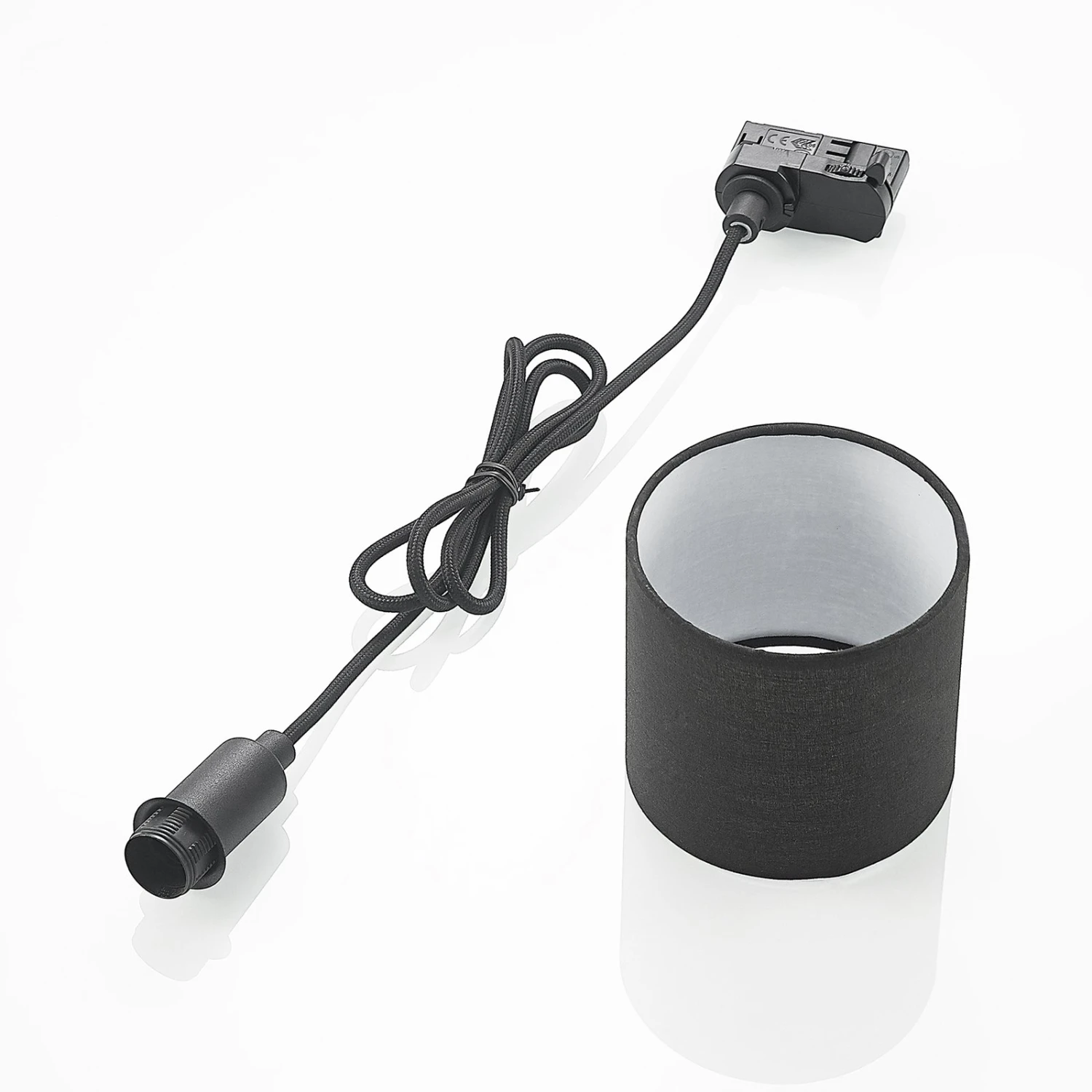 Pendelleuchte Heleni mit sandschwarzem Textilschirm in zylindrischer Form, in ein 3-Phasen-Schienensystem integrierbar
