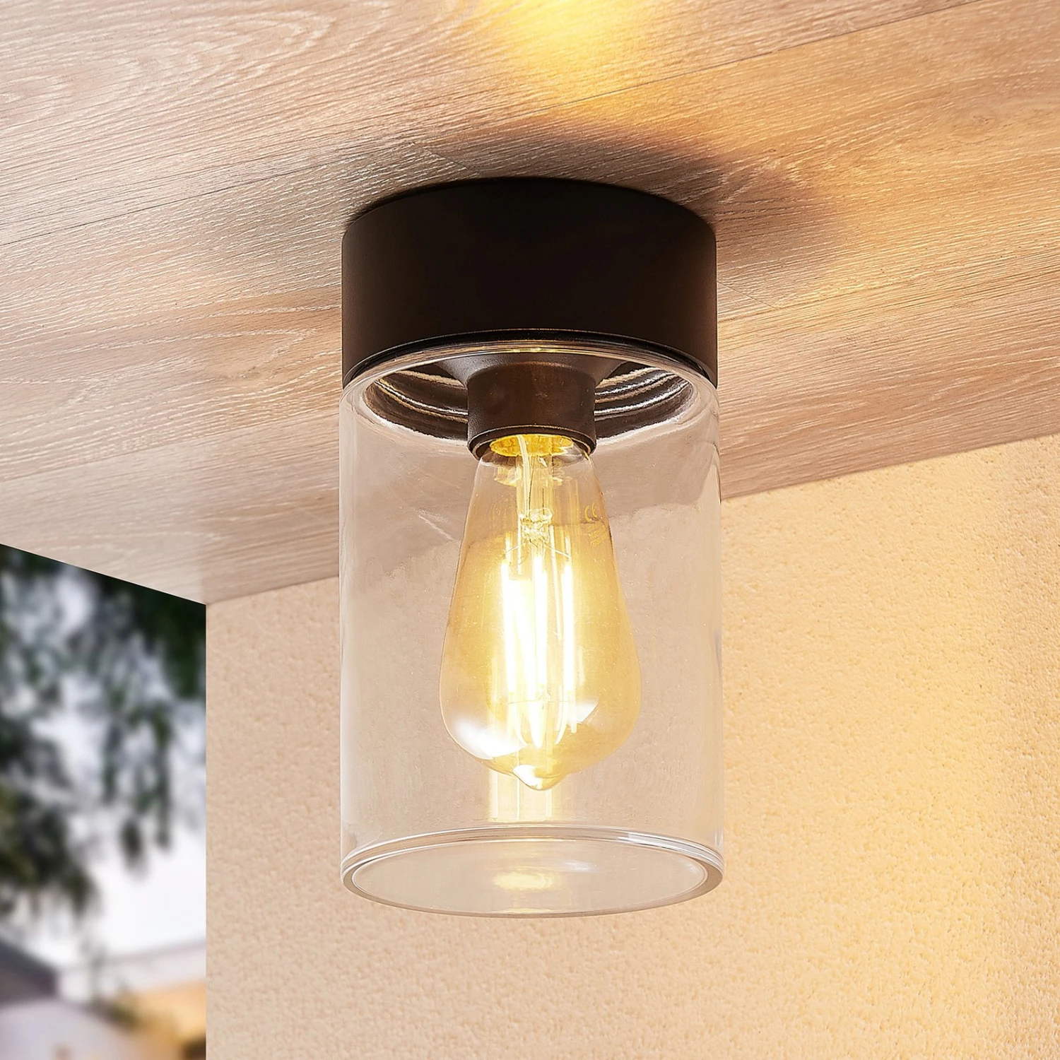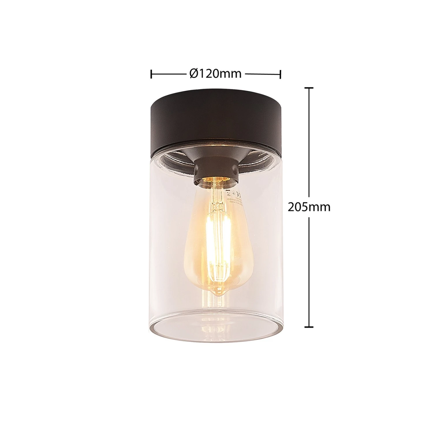 Liljana ist die passende Leuchte für viele überdachte Außenbereiche und sie wirkt dank der runden Zylinderform ebenso zeitgemäß wie zeitlos und kann daher besonders vielfältig genutzt werden. Die Deckenhalterung ist ebenso breit wie das Glas und in schwarz lackiertem Aluminium gehalten, während der Schirm aus dem klaren Glas im unteren Teil sehr präsent wirkt und den Blick direkt auf das Leuchtmittel lenkt. Wegen dieser guten Sichtbarkeit sollte auf ein optisch passendes Leuchtmittel geachtet werden, wie es Filament- und Rustikalampen sind, die mit der LED-Technik dann auch einen niedrigen Stromverbrauch aufweisen können.