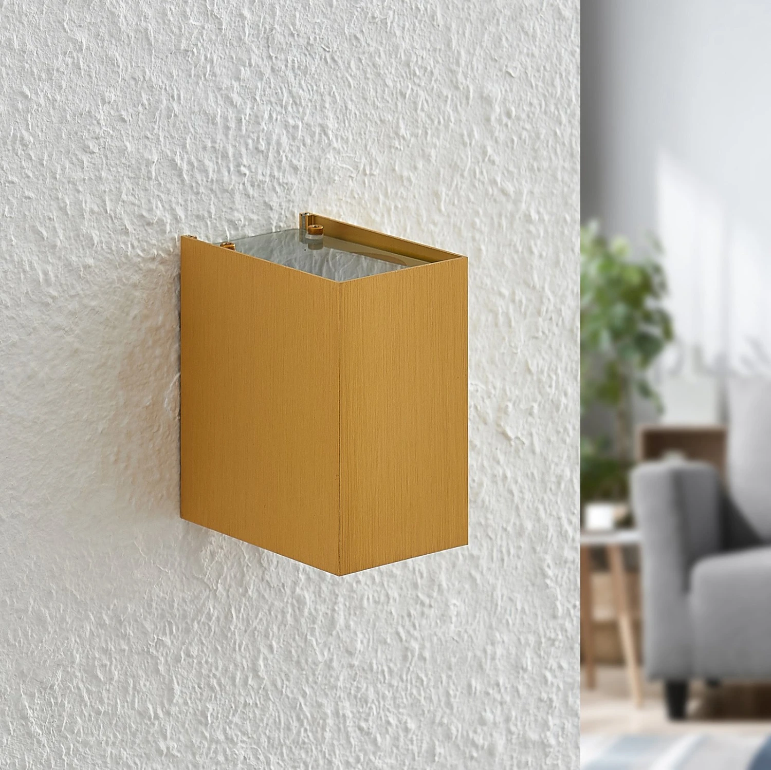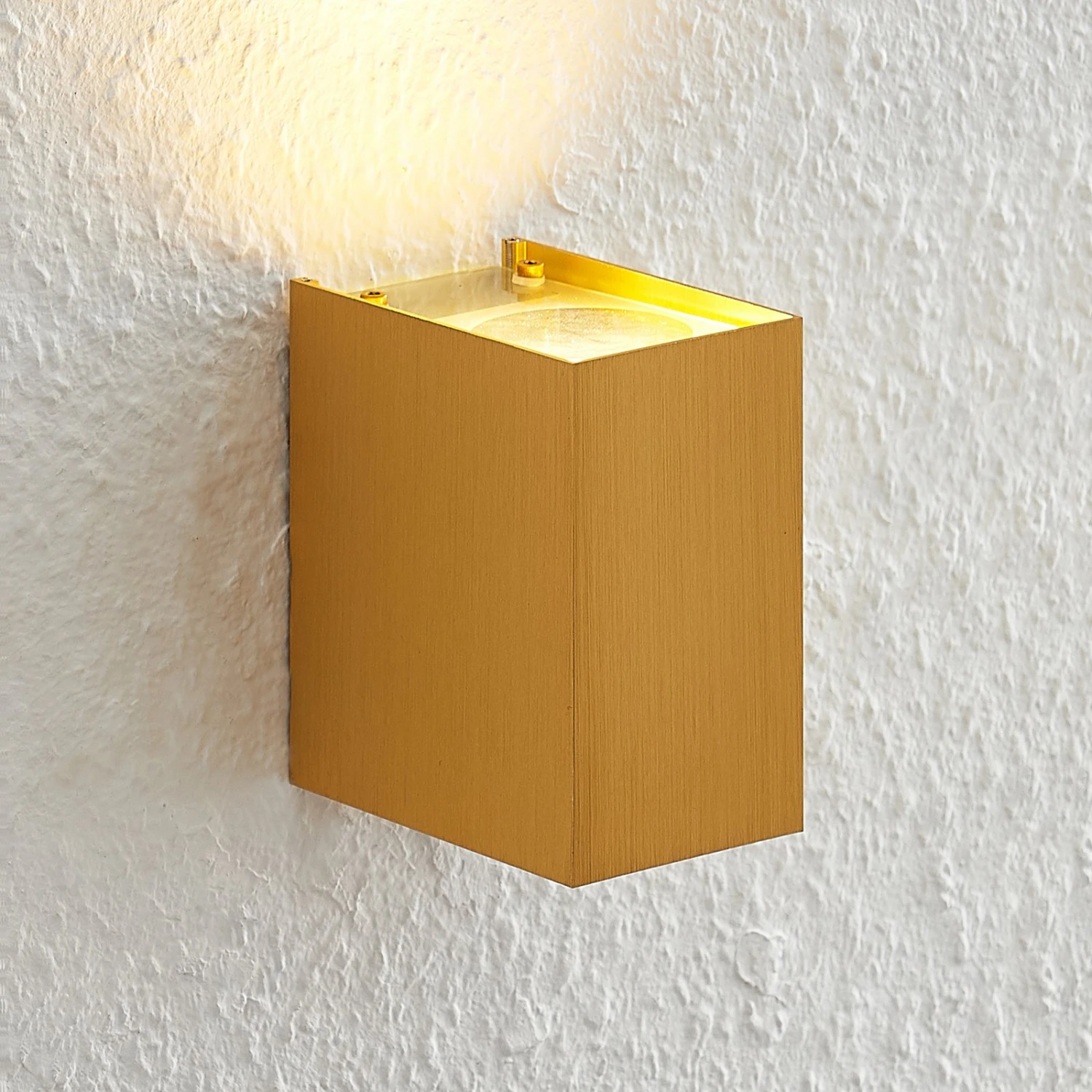 Die Wandleuchte Maruba kommt in einem goldenen Design daher und überzeugt mit ihrem modernen Look. Das Gehäuse wurde aus eloxiertem Aluminium gefertigt und mit einem goldenen Finish versehen, was Maruba einen gehobenen Charakter verleiht.