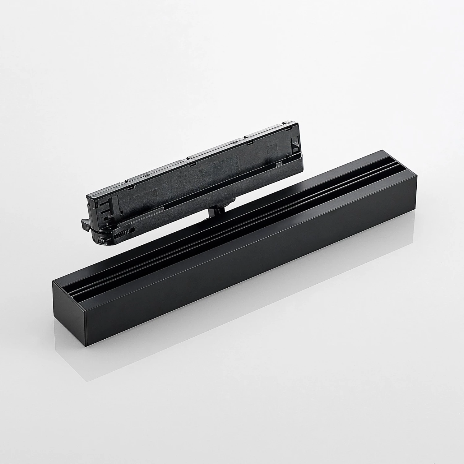 Schwarzer, schwenkbarer LED-Schienenstrahler Millay mit blendfreiem, flickerfreiem Licht, UGR 15