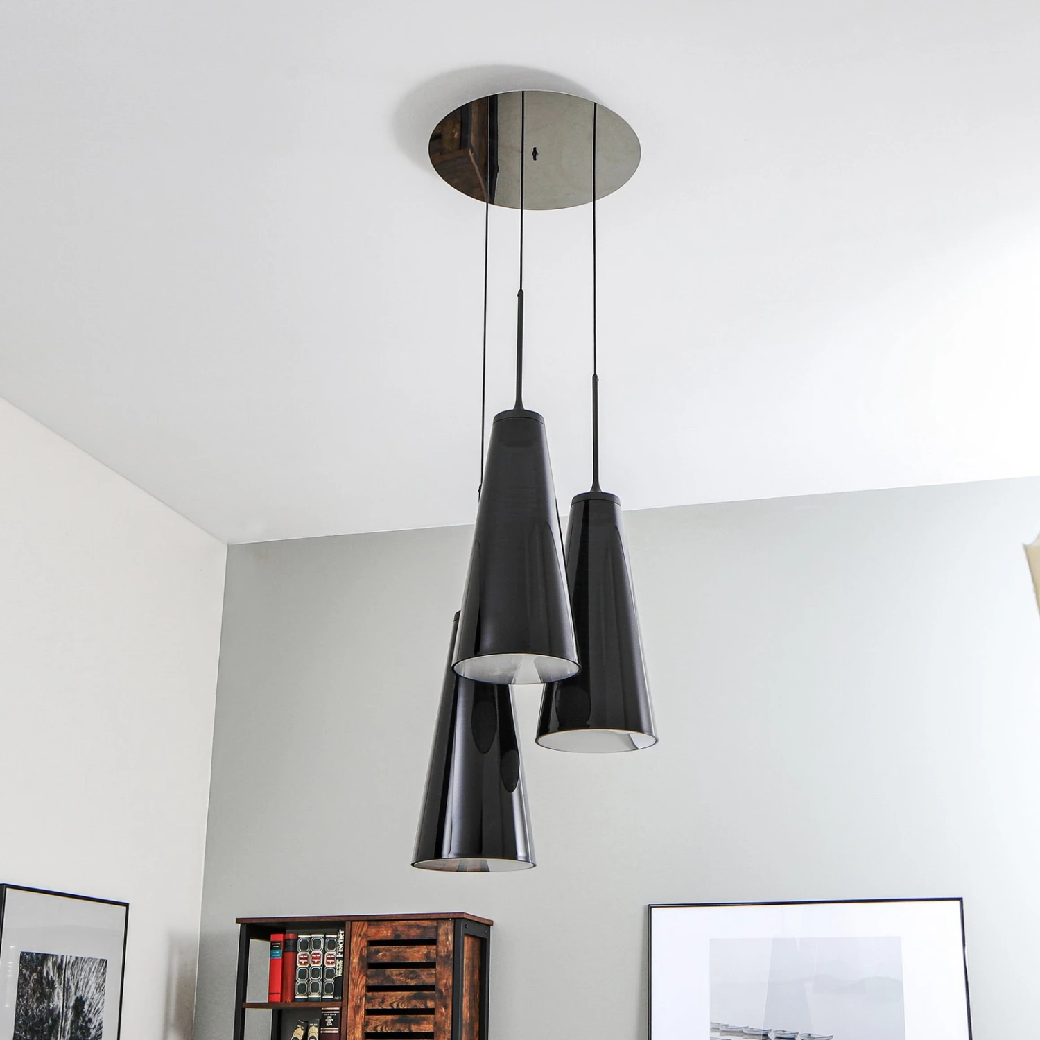 Die gebündelte LED-Hängeleuchte Look at Me 21 erfüllt nicht nur aufgrund der lichttechnischen Ausstattung mit leistungsstarken LEDs ihren Bestimmungszweck und sorgt für eine direkt nach unten gerichtete, breit streuende Umgebungsausleuchtung, sondern dient auch als dekoratives Einrichtungselement eines modernen Wohnumfelds. Die trendige Cluster-Hängeleuchte mit den dekorativen Schirmen, die unterschiedlich hoch gehängt sind, bietet sich für viele moderne Lichtkonzepte an.