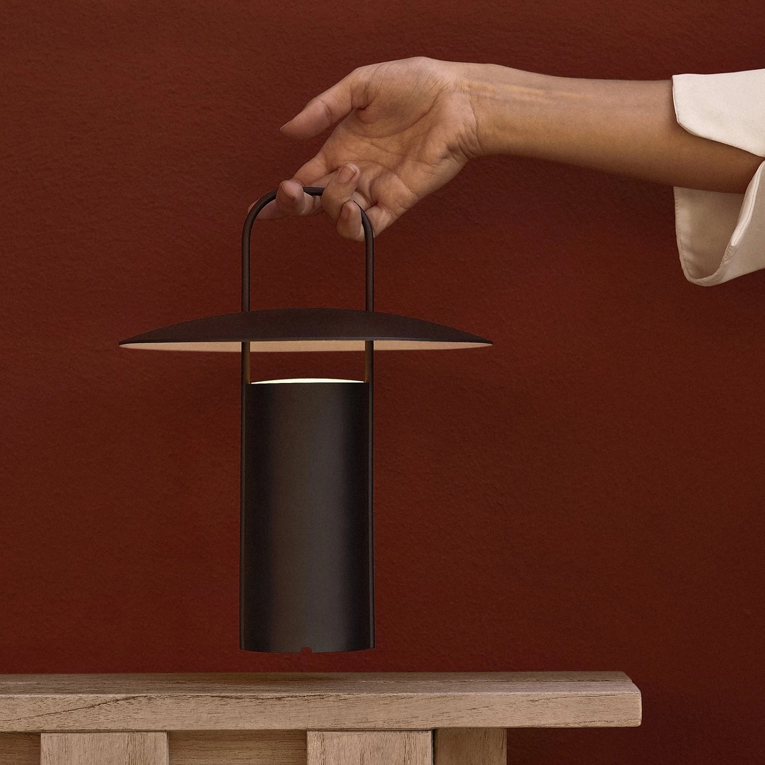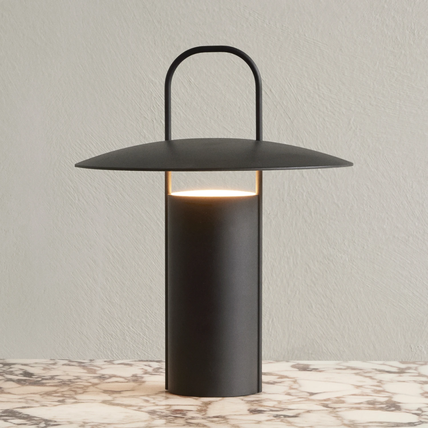 Die Tischleuchte Ray des Designers Daniel Schofield ist vom Design her die moderne Interpretation einer Grubenlampe – allerdings sehr puristisch gehalten. Korpus und Schirm bestehen aus Aluminium, ebenso der praktische Tragegriff, der eine komfortable Platzierung der Leuchte im gesamten Wohnraum, aber auch auf der Terrasse oder auf dem Balkon ermöglicht.