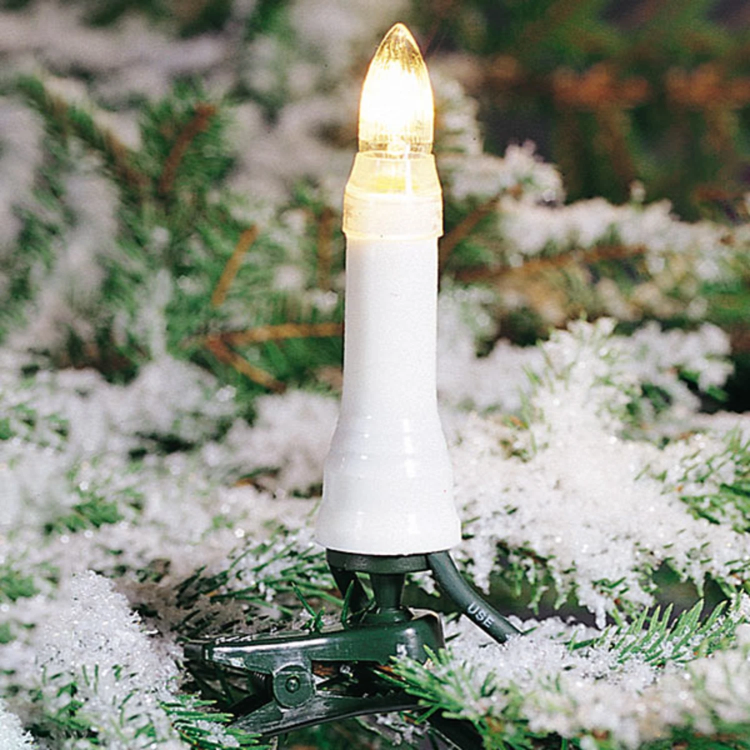 Diese Außen-Lichterkette bringt jeden Weihnachtsbaum – egal ob im Innen- oder Außenbereich auf einfache Art und Weise zum Glänzen. Der komfortable Fassungsabstand von 70 cm ermöglicht die gleichmäßige Verteilung der Kerzen. Aufgrund des teilbaren Steckers ist eine mühelose Rundumverteilung möglich.
