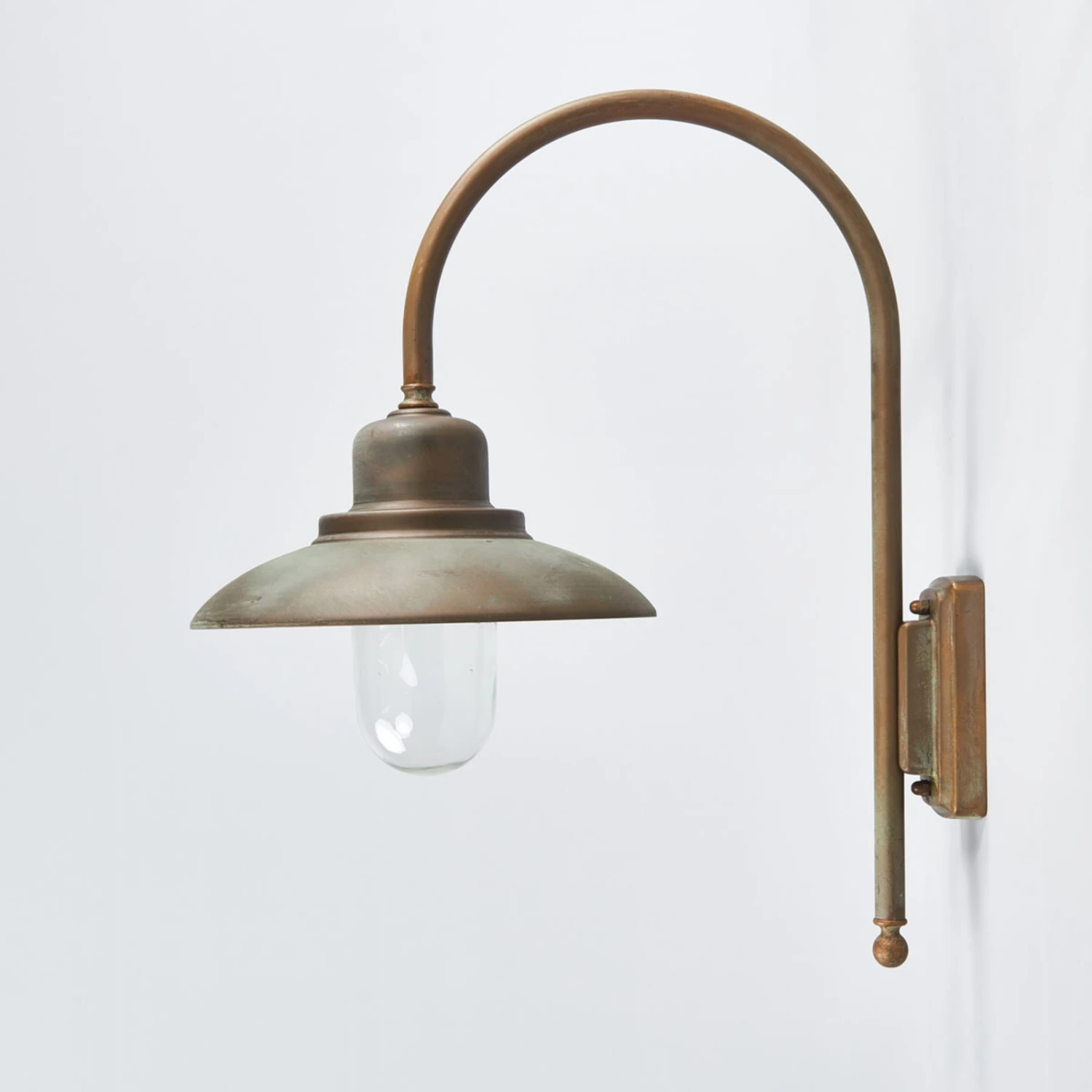 Mediterranen Charme versprüht die Außenwandleuchte Casale aus antikisiertem Messing. Die hochwertige Leuchte ist seewasserfest und kann deshalb auch in Meeresnähe eingesetzt werden. Die ausladende Wandleuchte strahlt durch den klaren Glasschirm helles Licht aus, das jeden Außenbereich weitläufig ausleuchtet.