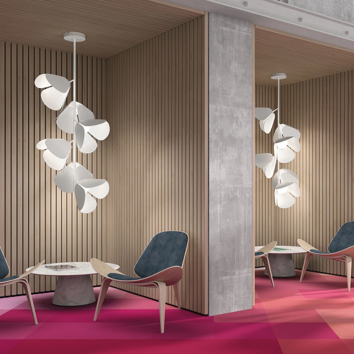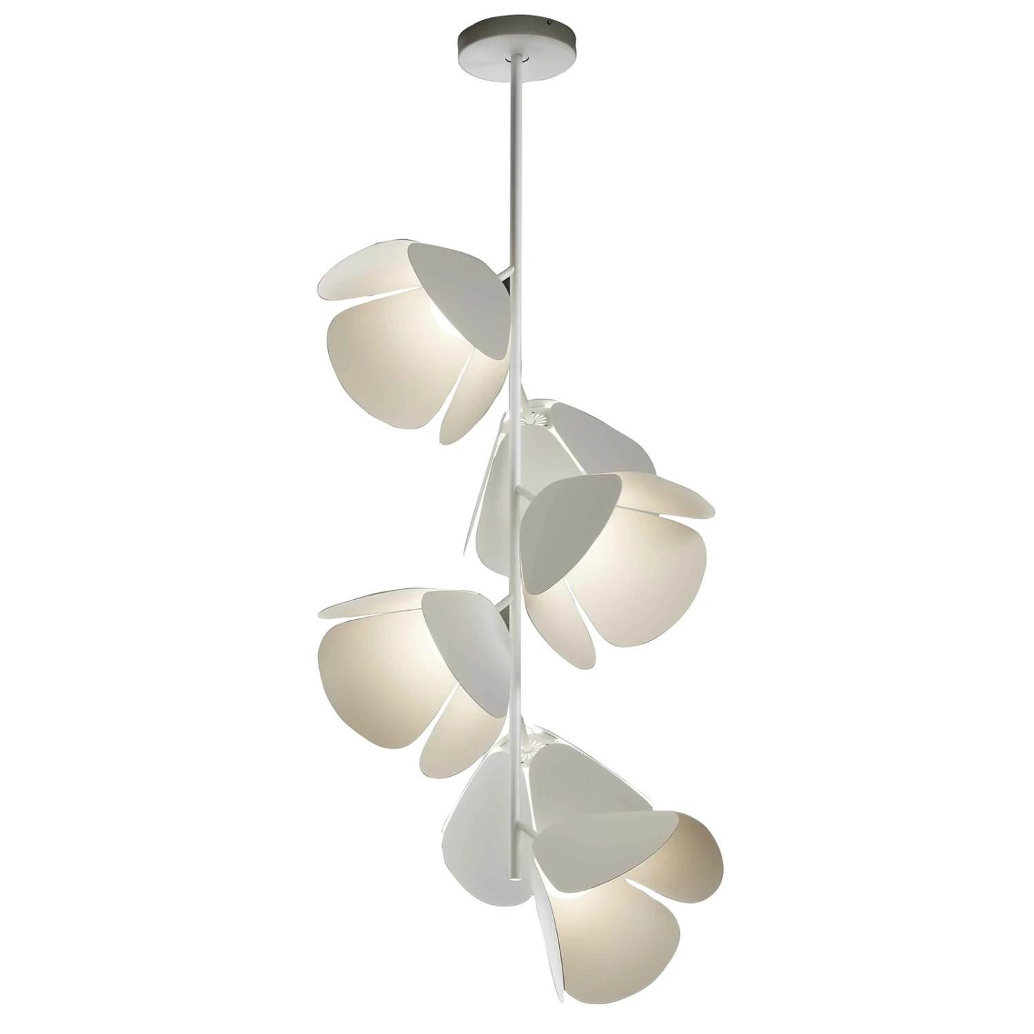 Leuchten, die eine Verbindung aus Malerei und Design herstellen und so einzigartige Atmosphären erschaffen – das ist das Ziel des Designers Lázaro Rosa-Violán, welches er in der Deckenleuchte Mod meisterlich umgesetzt hat. Die Leuchte sorgt nicht nur für ein angenehmes Licht, sondern ist auch gleichzeitig ein optisches Highlight. Mod ist mit sechs weißen Schirmen ausgestattet, die in ihrer Form Blüten nachempfunden sind. In der Mitte jeder Blüte ist eine LED eingebaut, die von einem Diffusor aus Kunststoff umgeben ist. Das warme Licht dringt sanft durch den weißen Kunststoff und wird so weich in der Umgebung verteilt. Dadurch entsteht ein angenehmer Lichtschein, der in Verbindung mit dem floralen Design der Leuchte für eine freundliche und einladende Atmosphäre sorgt.