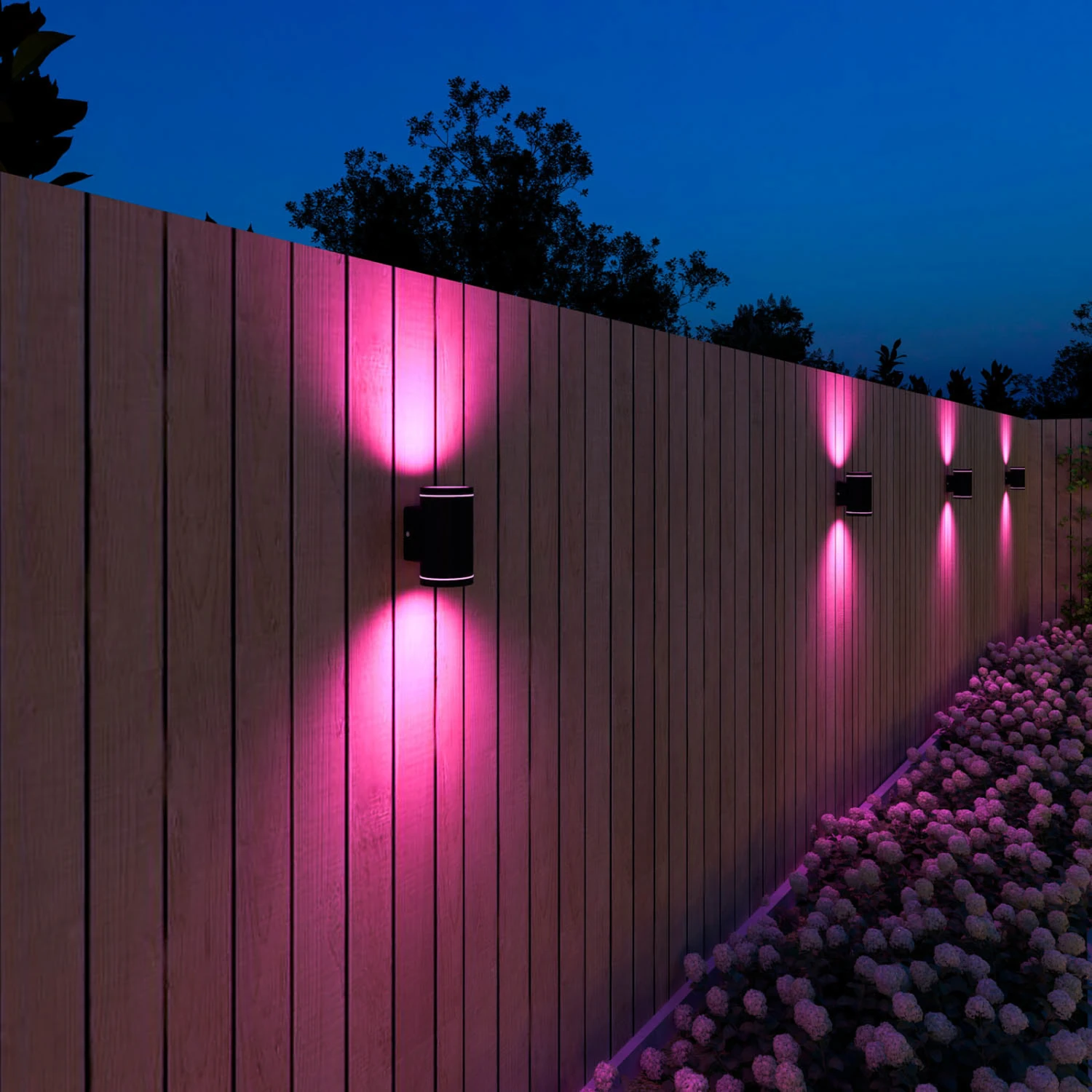 Mit App und Sprachbefehlen steuerbar: LED-Außenwandleuchte Smart Outdoor Up & Downlight im 2er-Set, CCT, RGB