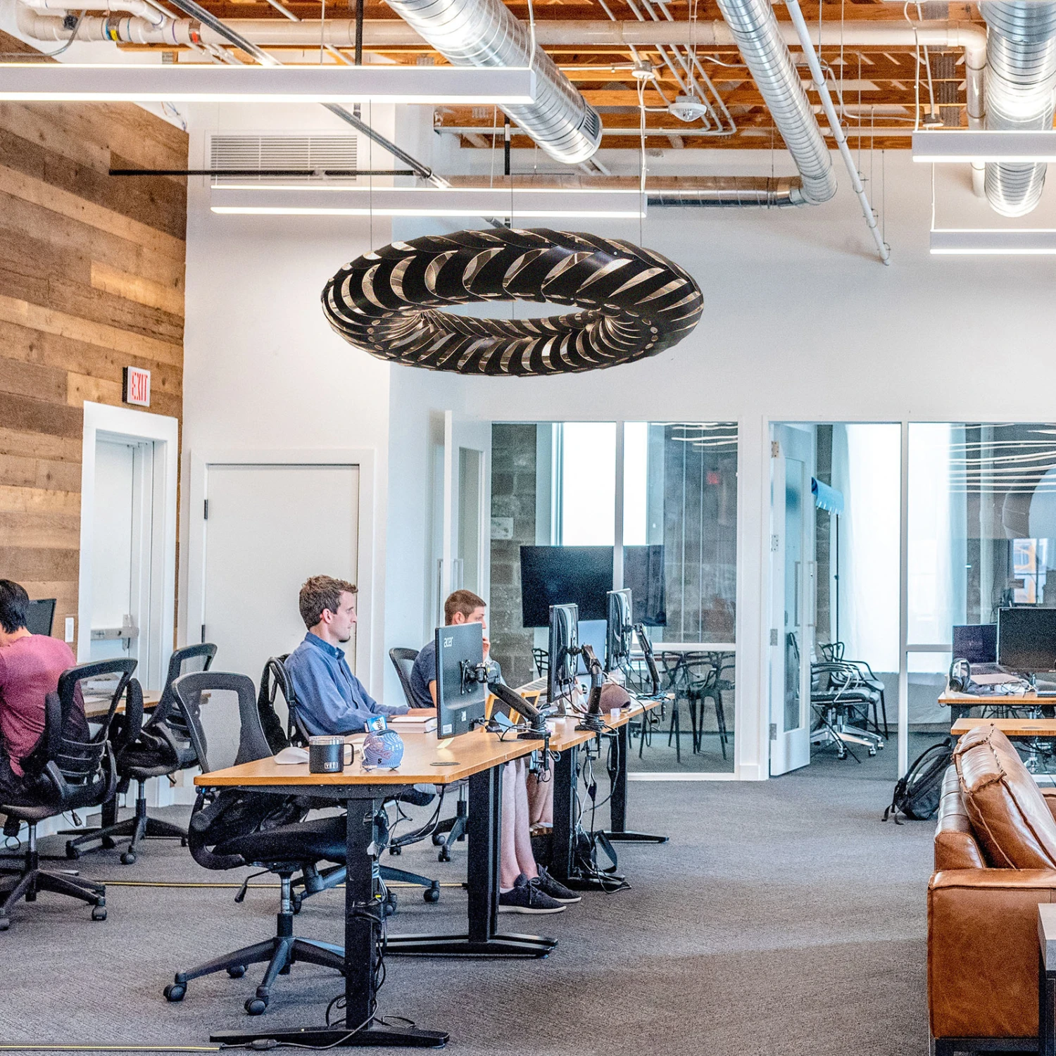Attraktiv designte LED-Pendelleuchte Maru aus Bambusfurnier-Elementen