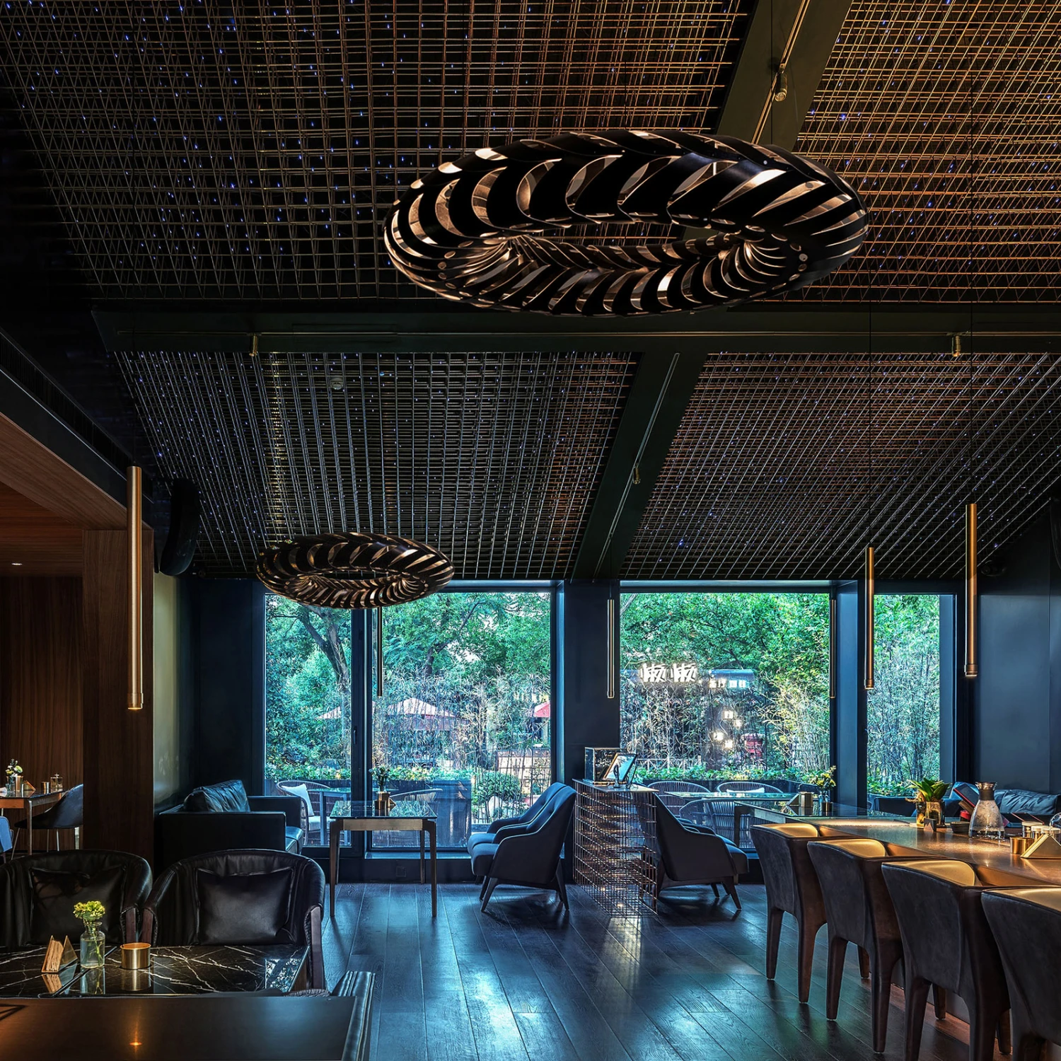 Lichttechnisch inszeniert wird der dekorative Schirm von LEDs. Mit Maru lässt sich eine Grund- oder Bereichsbeleuchtung, beispielsweise über einem Tisch, inszenieren, die die Umgebung in ein fabelhaftes Licht taucht und zugleich geheimnisvolle Schatten erzeugt.