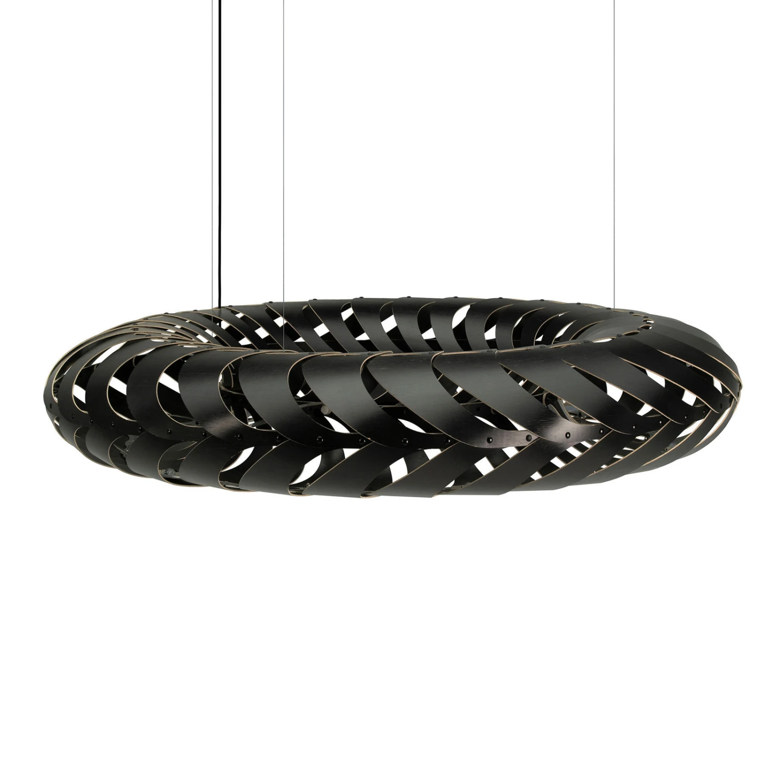Diese schöne Pendelleuchte mit dem reifenförmigen Schirm aus miteinander verbundenen Elementen aus Bambusfurnier entstand im Jahr 2018. David Trubridge, seines Zeichens bekannter Vertreter des Öko- und Slow-Designs, kreiert wunderbare Möbel und Leuchten, die aufgrund Inspirationen in seinem jetzigen Lebensumfeld entstehen. Trubridge ist eigentlich Engländer und Schiffsbauer von Beruf und ließ sich vor vielen Jahren mit seiner Familie in Neuseeland nieder. Zu der Optik von Maru ließ er sich von den Kieselalgen leiten, die die Basis der ozeanischen Nahrungskette bilden. Der Name Maru bedeutet sowohl in der Maori-Sprache als auch im Japanischen Lebenszyklus.