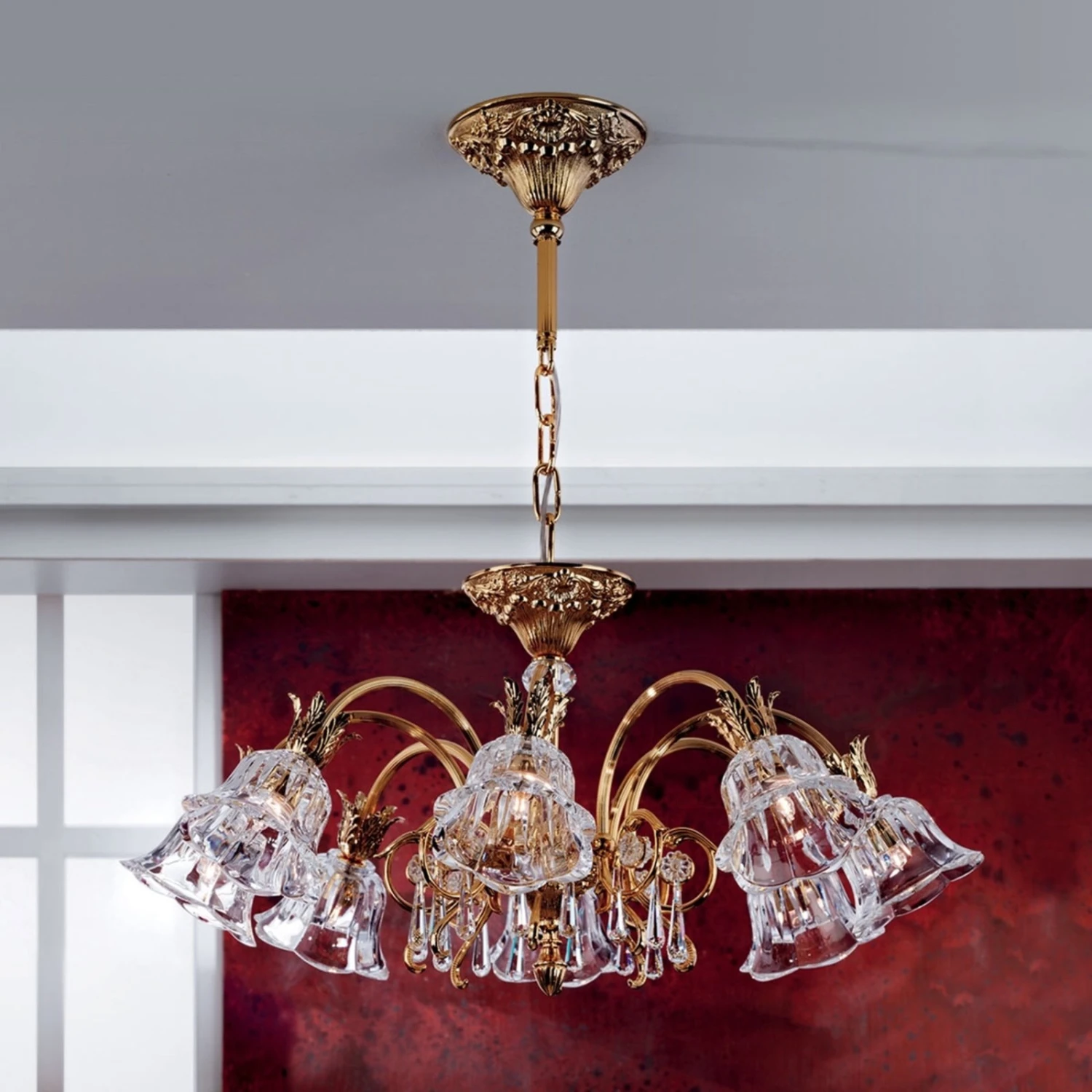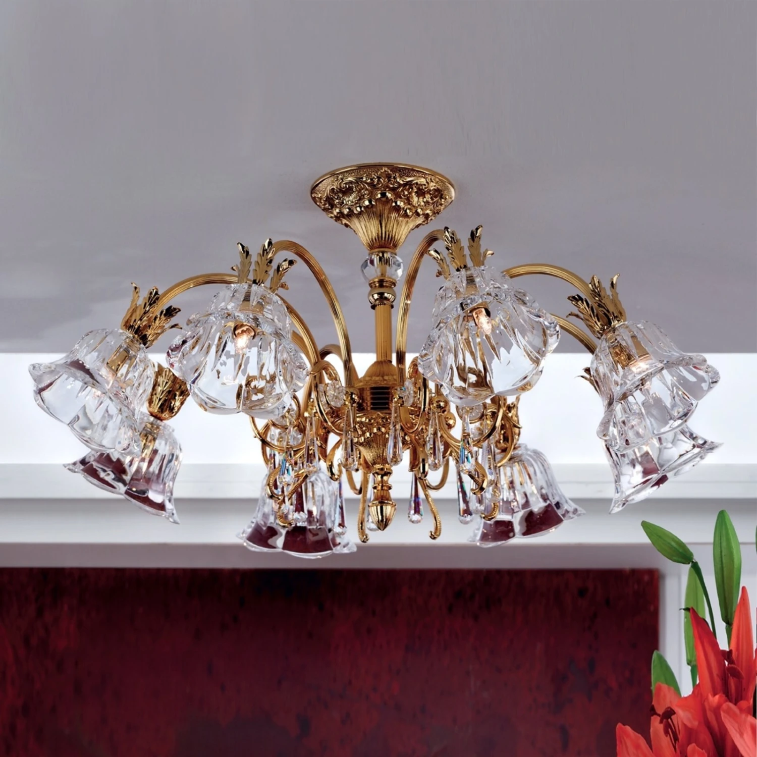 Achtflammige Deckenkrone Kaisa in detailreicher und vergoldeter Ausstattung