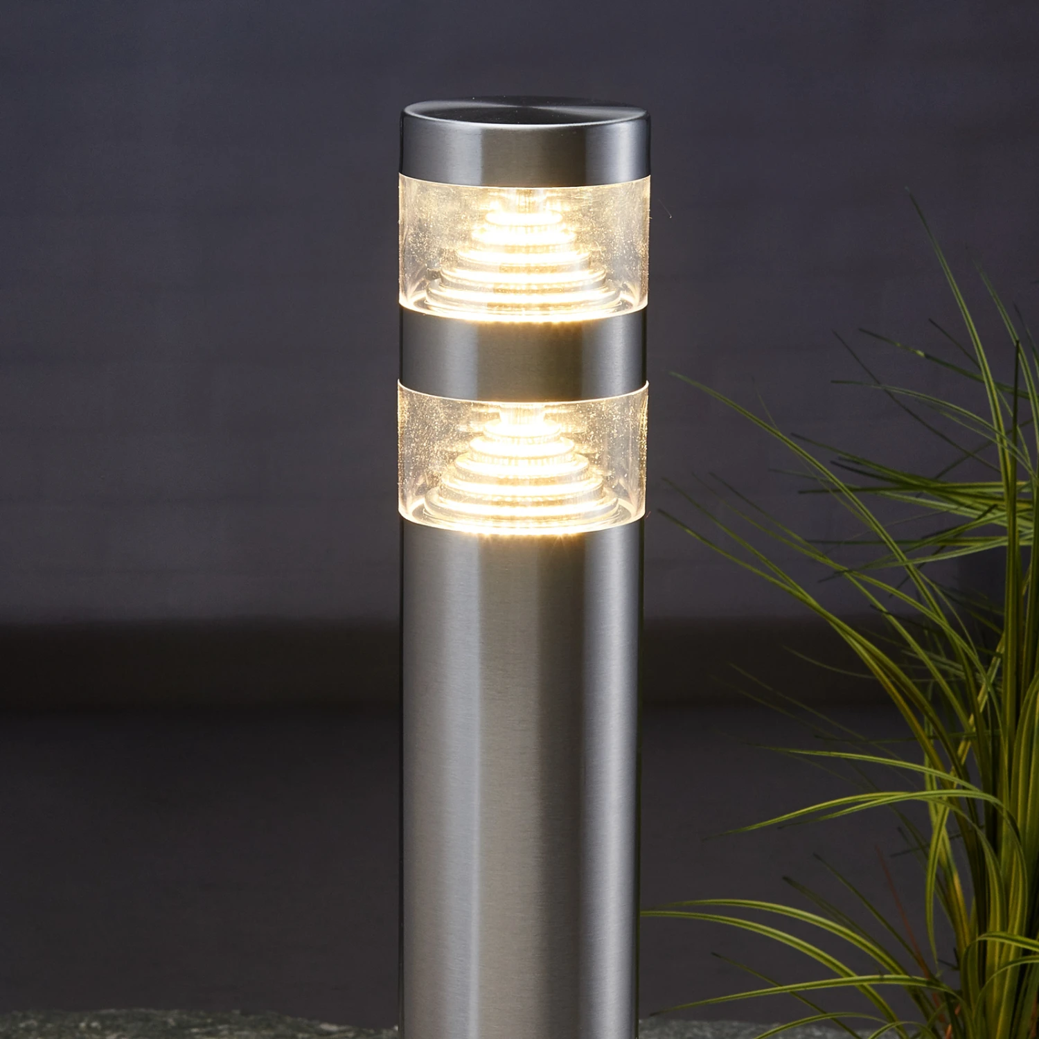 Edelstahl ist gewissermaßen die Nummer 1, wenn es um die Materialwahl bei Außenleuchten geht, denn Modernität und Zeitlosigkeit scheinen hier optisch vereint. Die mattsilberne Oberfläche passt zu vielen Architekturstilen und Umgebungen. Mit ihrer modernen Formensprache bringt die LED-Wegeleuchte Lanea auf energiesparende Weise Licht ins Dunkel, denn die Leuchtdioden erzeugen einen vergleichsweise hohen Lichtstrom, wohingegen der Energieverbrauch im niedrigen Bereich bleibt. Die Marken-LEDs von Epistar scheinen warmweiß, was in allen Bereichen, in denen es um Wohnen und Leben geht, stets eine gute Wahl ist, weil das im Vergleich zu kälteren Lichtfarben warm und behaglich wirkt.