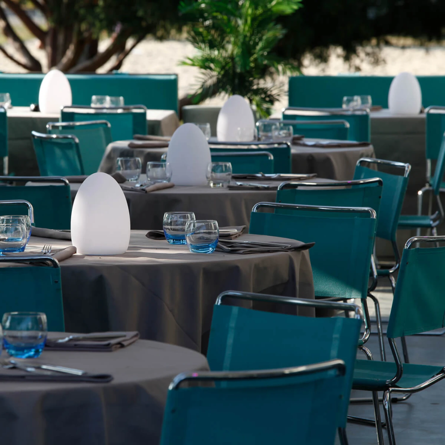 Im Außenbereich vieler Hotels, Restaurants oder in einer Strandbar auf der ganzen Welt ist die akku-betriebene LED-Tischleuchte Egg bereits ein Highlight und schmückt und beleuchtet Abend für Abend Tische oder Theken. Die Leuchte wird mit einer Ladestation geliefert, auf die sie zum Aufladen einfach aufgesteckt wird. Bei voller Aufladung des Akkus und bei geringster Helligkeit sorgt sie für bis zu 24 Stunden für eindrucksvolle und vor allem flexible Beleuchtung, denn hinter dem Leuchtenschirm aus schlagfestem und uv-resistentem Kunststoff wurden RGB-LEDs und weiße LEDs verbaut. Die Steuerung kann manuell oder per App mittels Smartphone oder Tablet erfolgen. Über die im Fuß der Leuchte integrierten Tasten lassen sich manuell 7 verschiedene Lichtfarben, 3 verschiedene Lichtmodi und die Lichtintensität auswählen. Über die kostenlose Smart & Green App und die Bluetooth-Verbindung kann die Steuerung ganz komfortabel über das Smartphone oder ein Tablet erfolgen. Hier sind unzählige Lichteinstellungen und Lichtszenarien realisierbar. Eine enorme Leuchtkraft und die einfache Handhabung haben Egg zu einem beliebten Dekorationsobjekt gemacht.