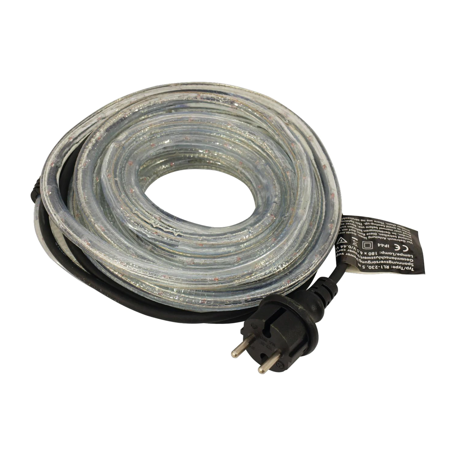 Der Lichtschlauch Rubberlight RL1 ist mit Schutzart IP44 vor Witterungseinflüssen geschützt und mit einem 150 cm langen Kabel mit Konturenstecker ausgestattet.