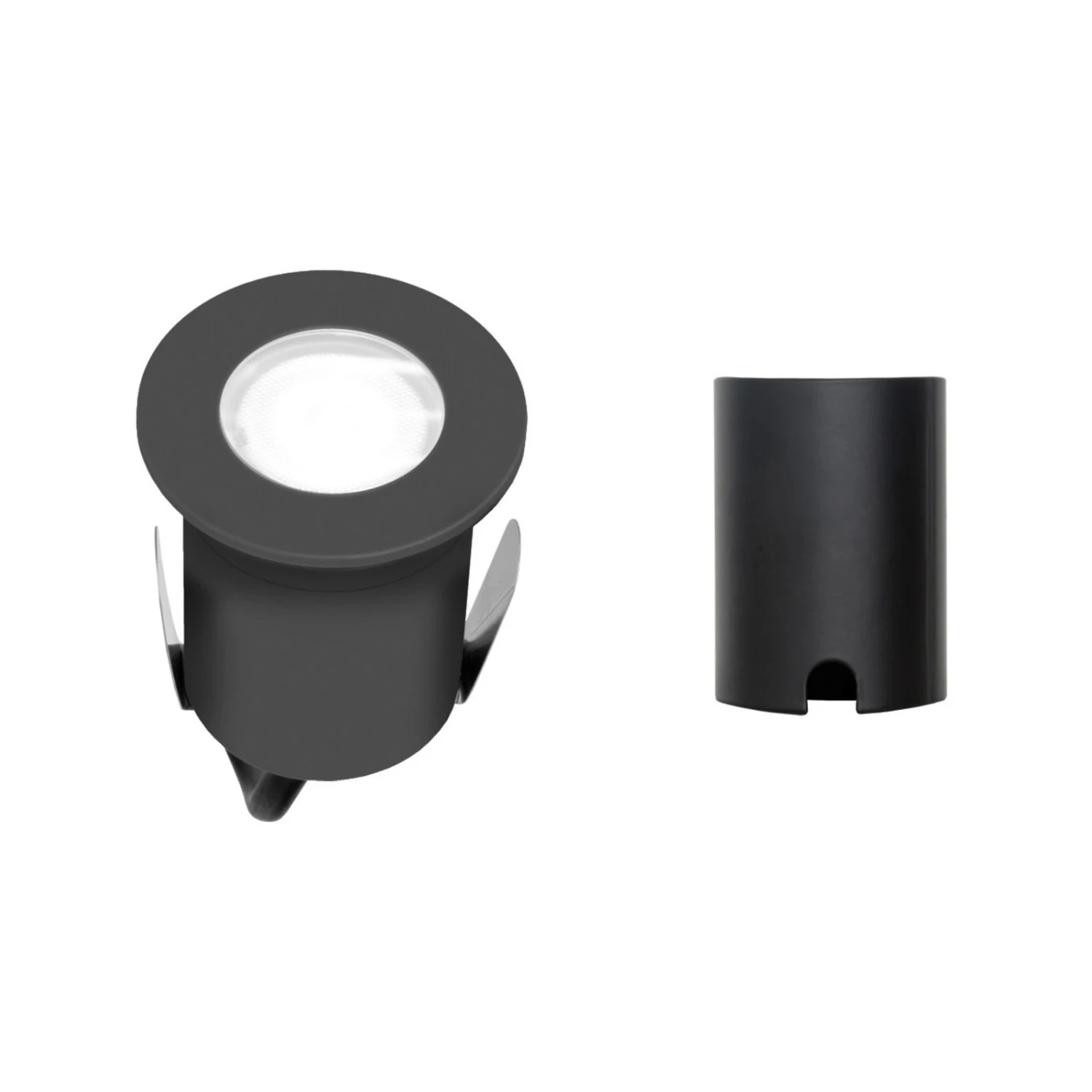 Die anthrazitfarbene LED-Bodeneinbauleuchte 652120A besteht aus rostfreiem V4A-Edelstahl und wird inklusive eines Einbautopfes aus Aluminium geliefert. Ein LED-Modul ist integriert, erzeugt warmweißes Licht und wird von Glas abgedeckt.
