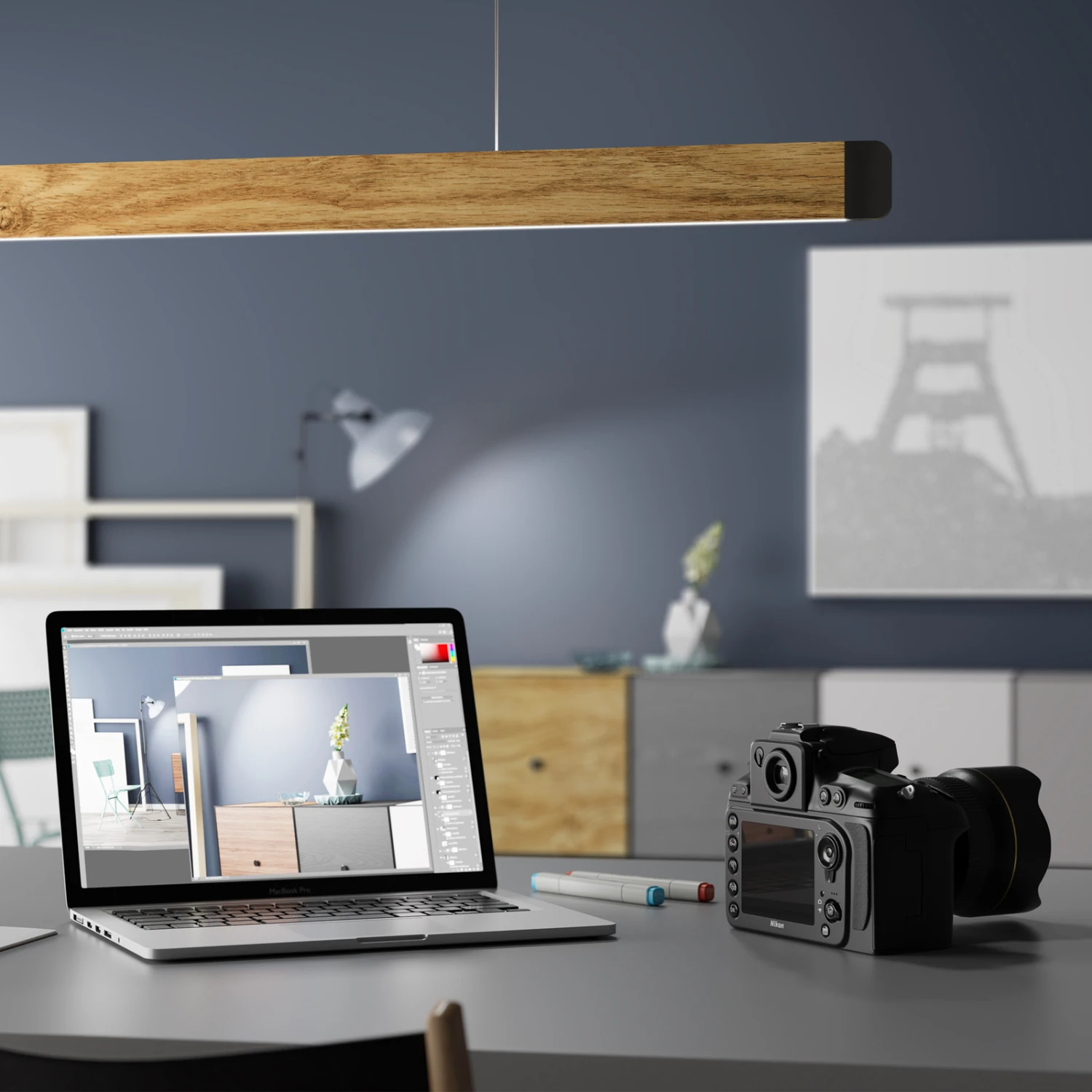 Individualisierung in Perfektion, das bietet die LED-Pendelleuchte Onyxx Linea Pro aus dem Hause Grimmeisen. Ob im privaten Wohnraum oder gewerblichen Office, diese Leuchte bietet ein Maximum an Design, Technik und Individualisierung. Erzielt wird dies durch einen schmalen Leuchtenkörper aus Vollaluminium, der durch magnetisch befestigte Echtholz-Stylecover eine Bühne der Kreativität bietet, denn diese lassen sich jederzeit auswechseln, um das Design der Einrichtung nachhaltig anpassen zu können. Besonderes Designmerkmal sind hierbei die beiden konkav geformten Endstücke aus eloxiertem Aluminium, die an den Ecken leicht abgerundet sind und eine umlaufende Schattenfuge aufweisen. Das Licht wird aus dem schmalen Balken sowohl direkt als auch indirekt abgestrahlt, die interaktive Gestensteuerung oder aber auch der kleine Schalter am Balken ermöglichen hier eine bedarfsgerechte sowie individuelle Schaltung des Lichts. Durch die Bluetooth-Funktion kann das Licht auch über die Casambi-App mit dem Tablet oder Smartphone gesteuert und dem biologischen Rhythmus angepasst werden. Eine patentierte Höhenverstellung mit unsichtbarer Stromführung bringt die Leuchte stufenlos auf die gewünschte Höhe.
