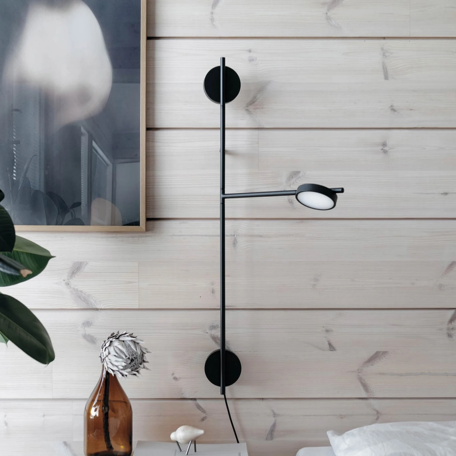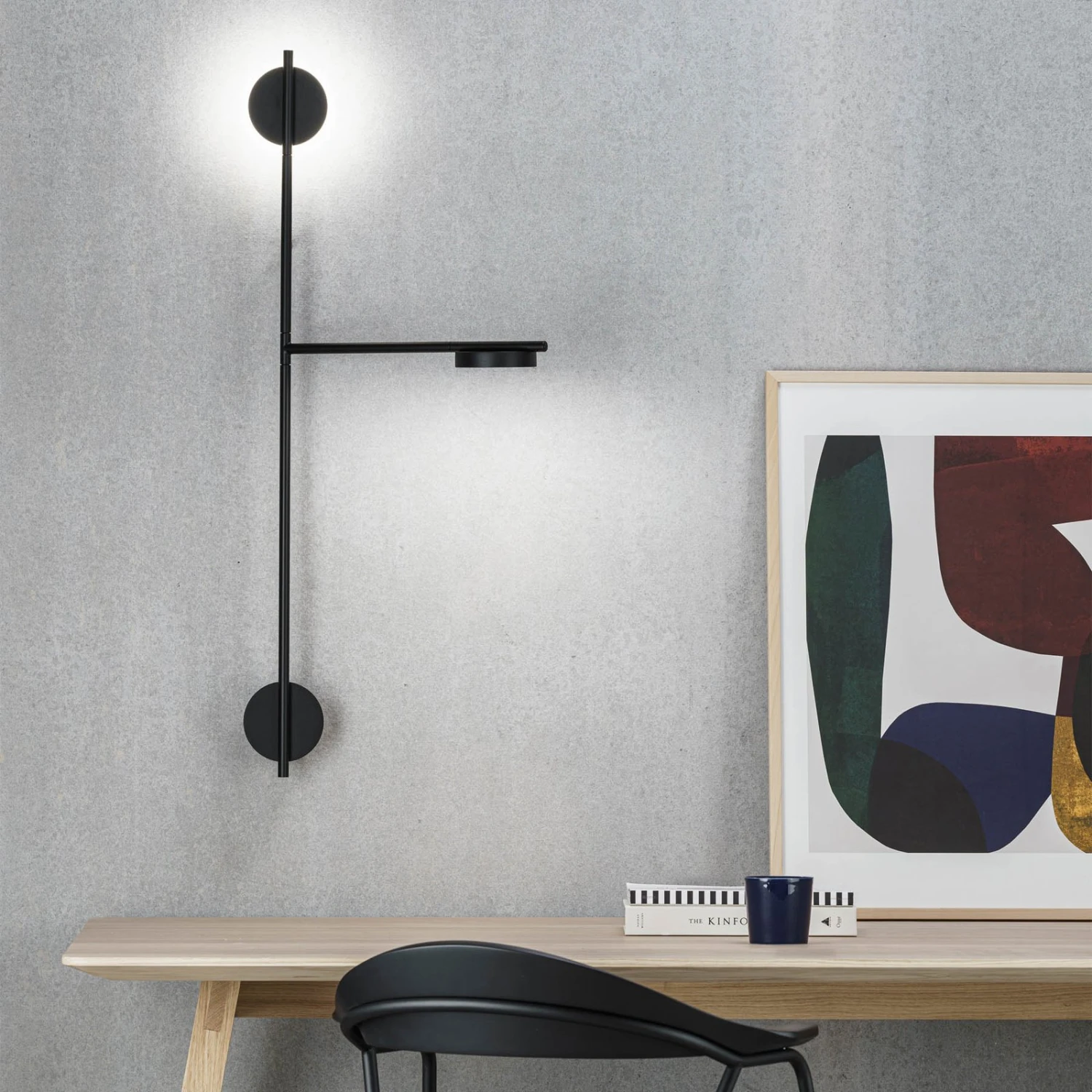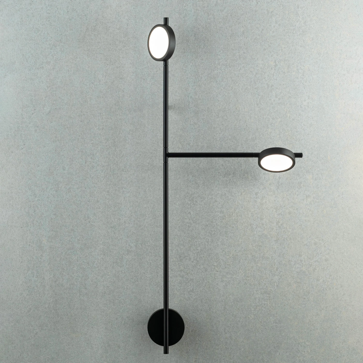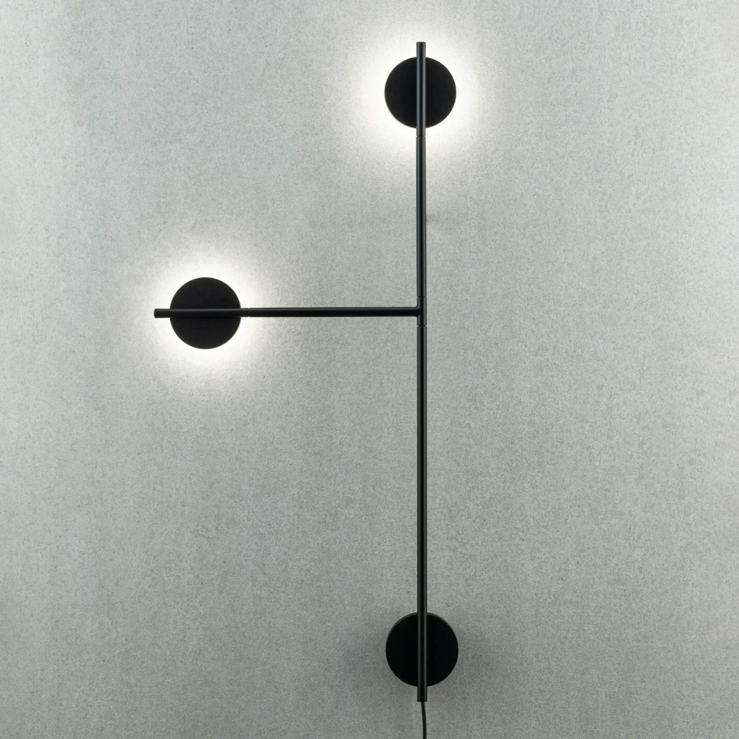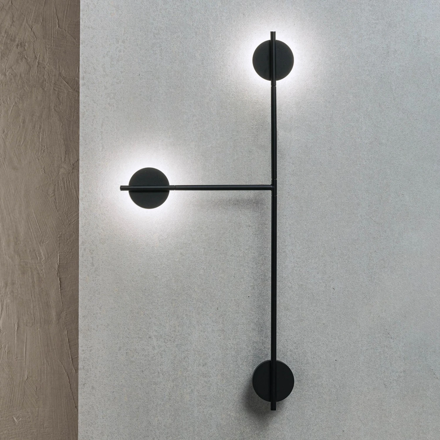 Flexibel, modern und elegant präsentiert sich die vom kroatischen Unternehmen GRUPA entworfene und produzierte Wandleuchte Igram. Eine runde Wandhalterung trägt einen schlanken, nach oben gerichteten Arm aus Stahl, an dem auf etwa halber Höhe ein horizontaler Arm schwenkbar angebracht ist. Beide Arme halten je einen runden Schirm aus Aluminium in der Form der Wandhalterung. Die Schirme sind horizontal bzw. vertikal rotierbar, sodass das warmweiße Licht der hinter PMMA-Abdeckungen integrierten LEDs zur direkten oder indirekten Beleuchtung über Decke und Wand genutzt werden kann.