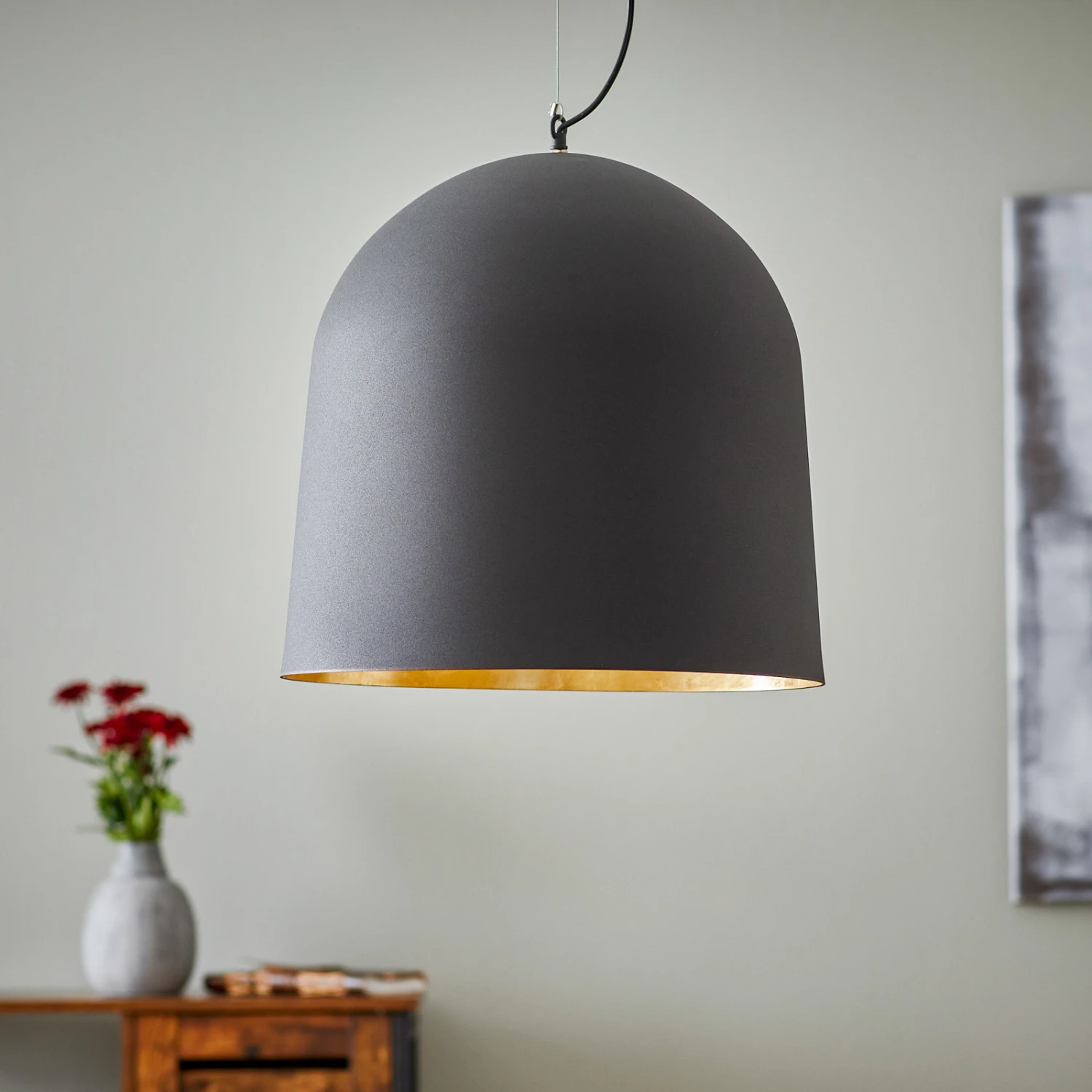 Die Hängeleuchte Crater wird höchsten Ansprüchen an außergewöhnliches Design und besondere Farbkomposition gerecht. Der Schirm wurde aus Aluminium gefertigt und in Schwarz lackiert. Aufgrund der goldfarbenen Innenseite des Schirmes der Hängeleuchte entsteht ein wahres Highlight in modernen Einrichtungsstilen. Darüber hinaus trägt die Hängeleuchte Crater mit ihrer besonders warmen Farbe zu einer stimmungsvollen Beleuchtung und einer angenehmen Atmosphäre bei.