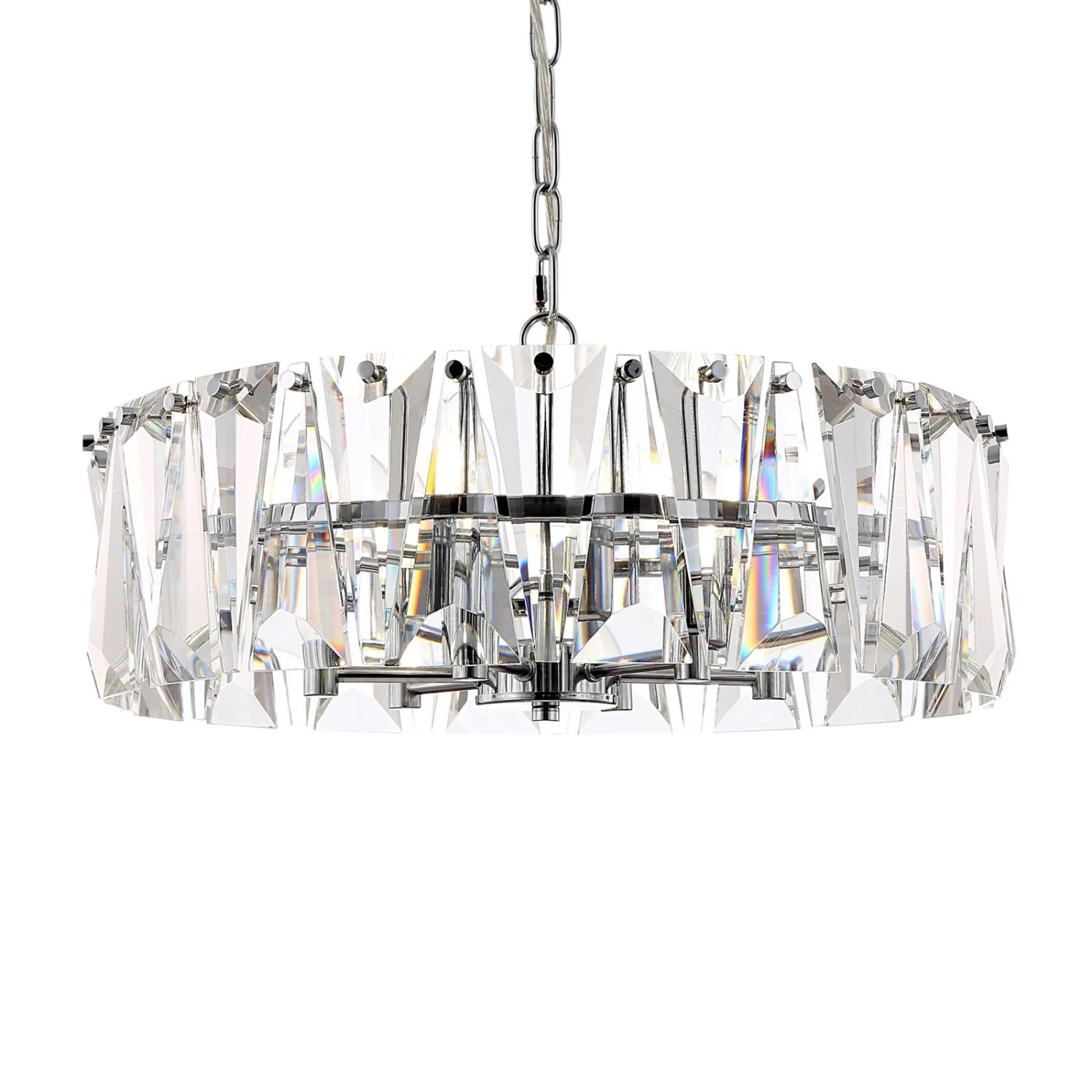 Sehr dekorativ und trotzdem modern, so kommt die Hängeleuchte Puntes daher. Sie besteht aus einem chromfarbenem Gestell und mehreren Glas-Einsätzen, die sich auf der Außenseite des Schirms aufreihen und der Leuchte ihre bemerkenswerte Optik geben. Puntes passt sehr gut als Tischbeleuchtung in modernen Wohnräumen.