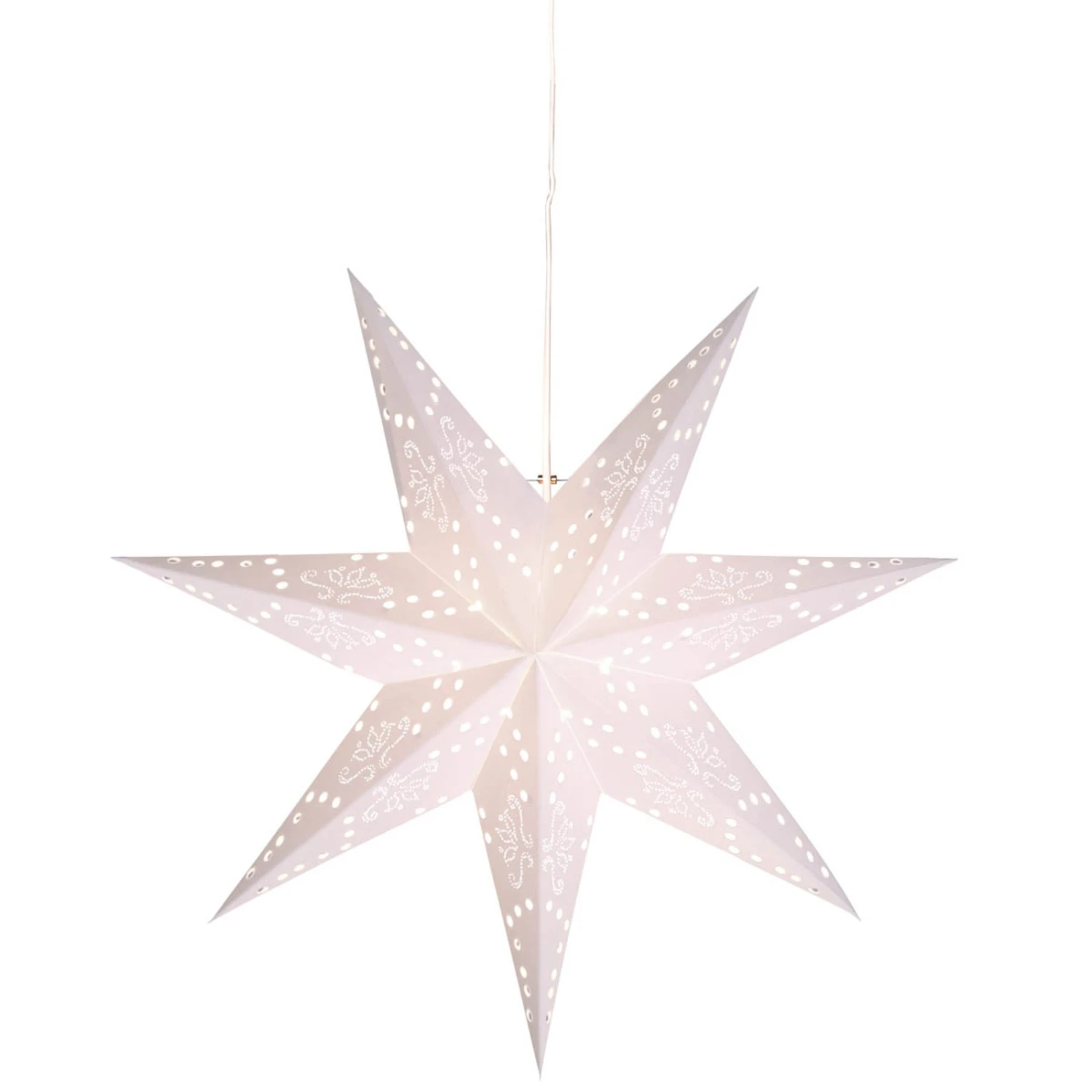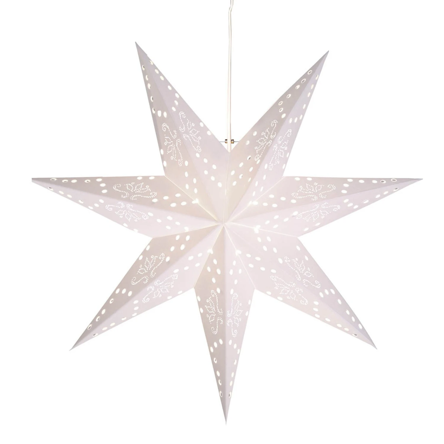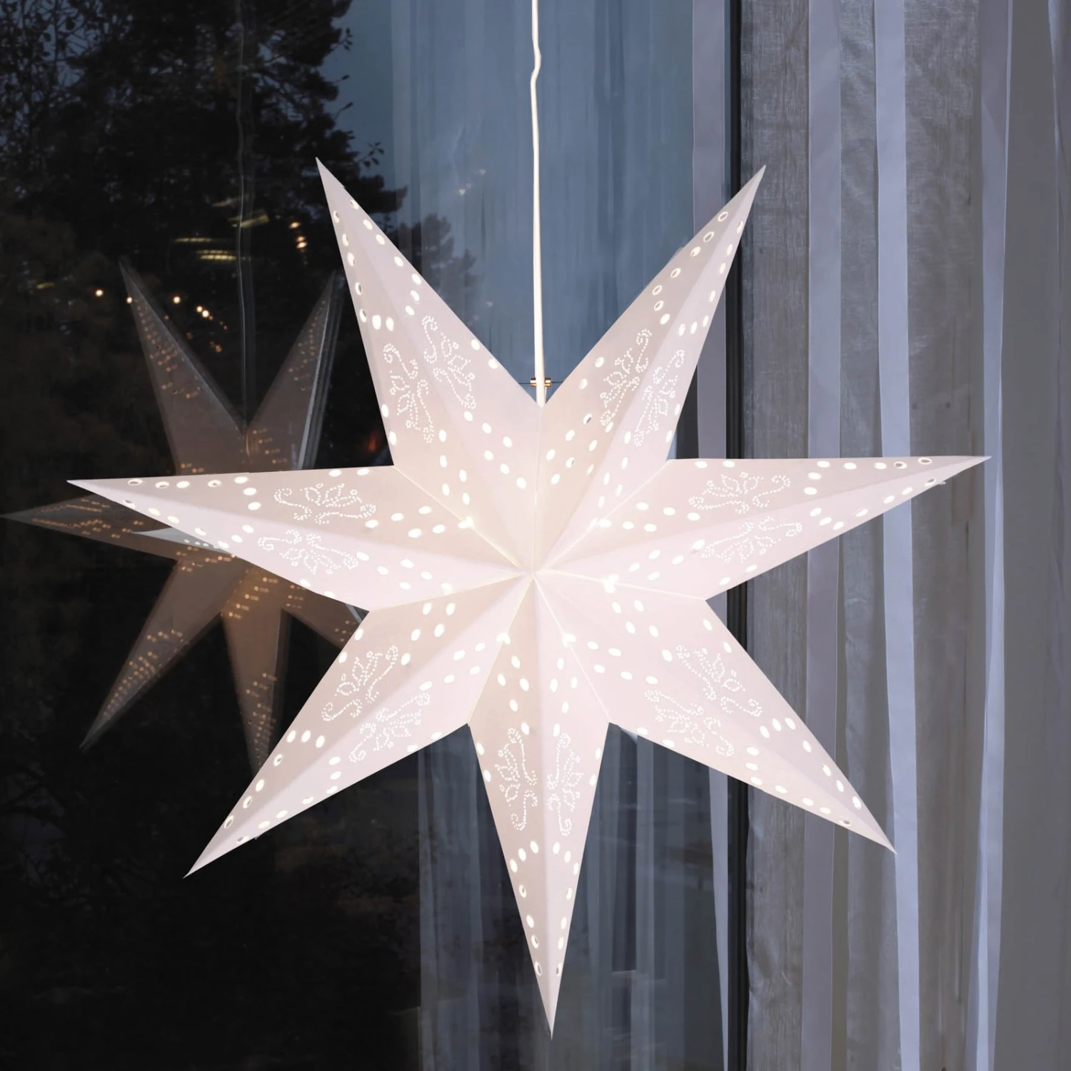 Weihnachtsbeleuchtung mit romantischem Touch bietet dieser wundervoll gearbeitete, siebenzackige Papierstern. Er verbreitet mit dem auffälligen Lochmuster, das durch die Beleuchtung erst richtig inszeniert wird, ein unvergleichliches Ambiente. Vor dem Fenster aufgehängt, freuen sich Bewohner sowie Vorübergehende an diesem weihnachtlichen Dekorationsaccessoire.