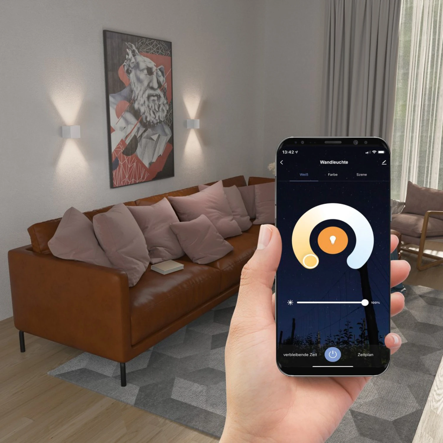 – Timer und vordefinierte Szenen per App einstellbar