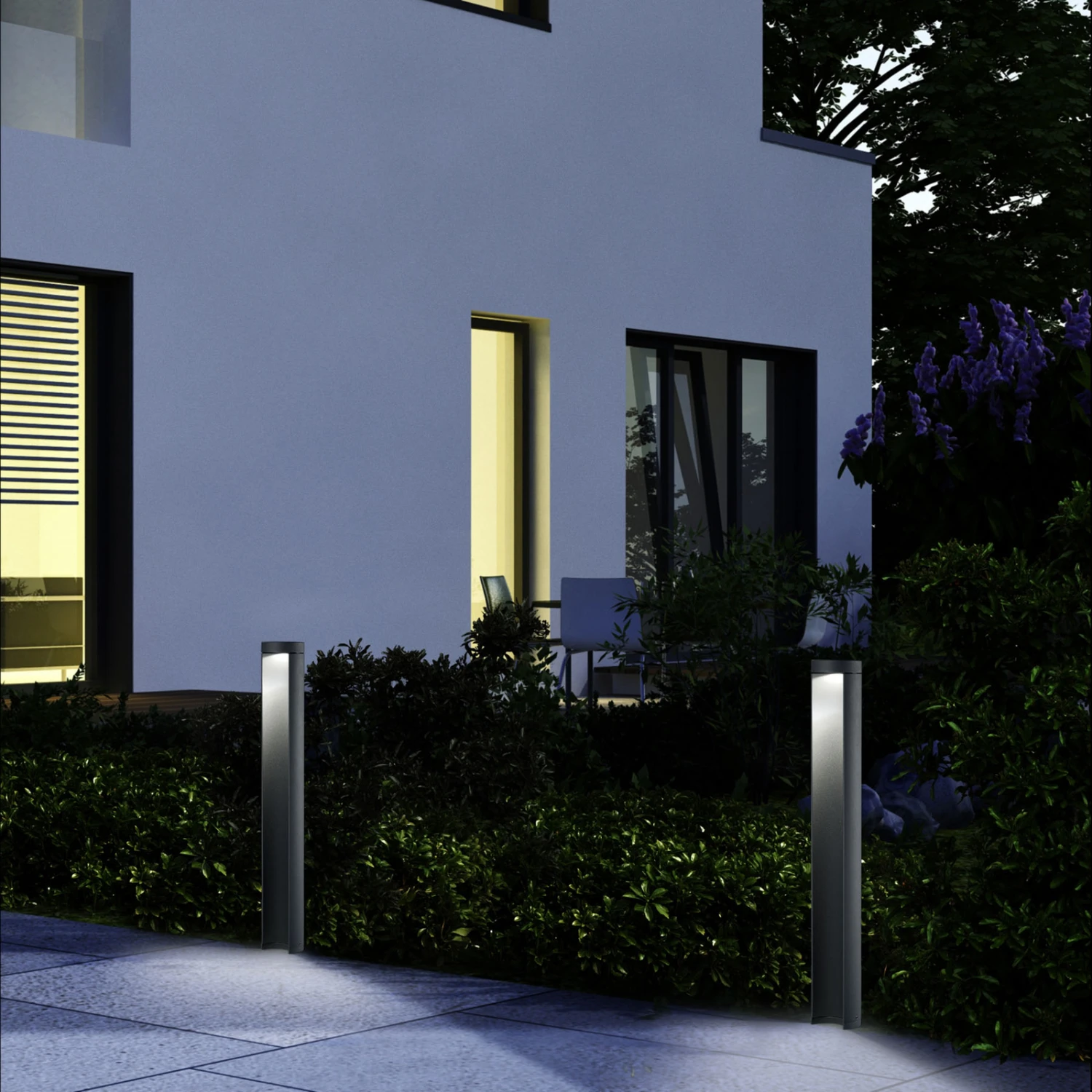 Die modern und schlicht gestaltete Wegeleuchte eignet sich perfekt zur Ausleuchtung von Wegen rund ums Haus und erfüllt diese Aufgabe dank moderner LEDs energiesparend.