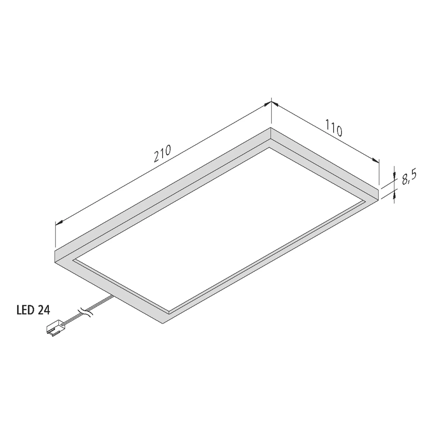 Für den Anschluss ist die Unterbauleuchte mit einer 2,5 m langen Leitung mit LED 24-Stecker ausgestattet. Auf Grund der Anschluss- und Betriebsspannung von 24 V wird für die Inbetriebnahme ein LED-Trafo benötigt (siehe Zubehör).
