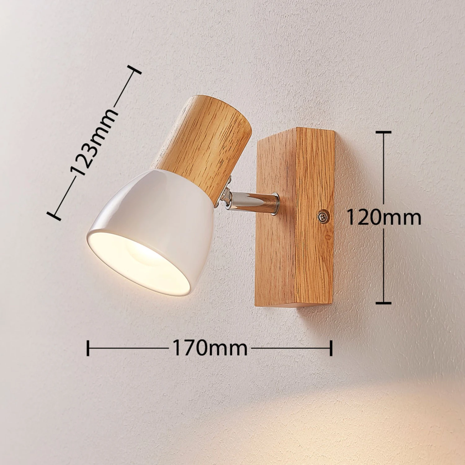 Mit Thorin holt man sich natürliches Flair in den Wohnraum, denn das Gestell des Spots ist großflächig aus warm wirkendem Holz gefertigt worden. Damit kann man die Leuchte natürlich sehr gut in allerlei Landhausstile integrieren, von modern bis relativ klassisch. Der Schirm hingegen erinnert an eine Kugel und besteht aus komplett weißem Metall. Wegen der Lichtundurchlässigkeit dieses Materials entweicht der Lichtschein zielgerichtet nach vorne. Der Holzspot kann sowohl an der Decke als auch an der Wand montiert werden und lässt sich über das Gelenk individuell verstellen.