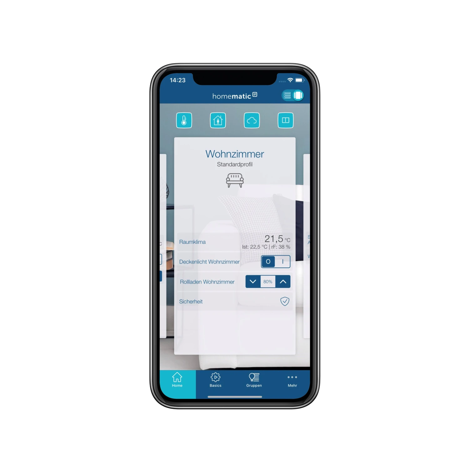 a) Einbindung über Homematic IP Access Point mit Konfiguration und Bedienung über kostenlose Homematic IP App für iOS und Android und kostenfreiem Cloud-Service (ermöglicht Sprachsteuerung über Amazon Alexa oder Google Assistant)