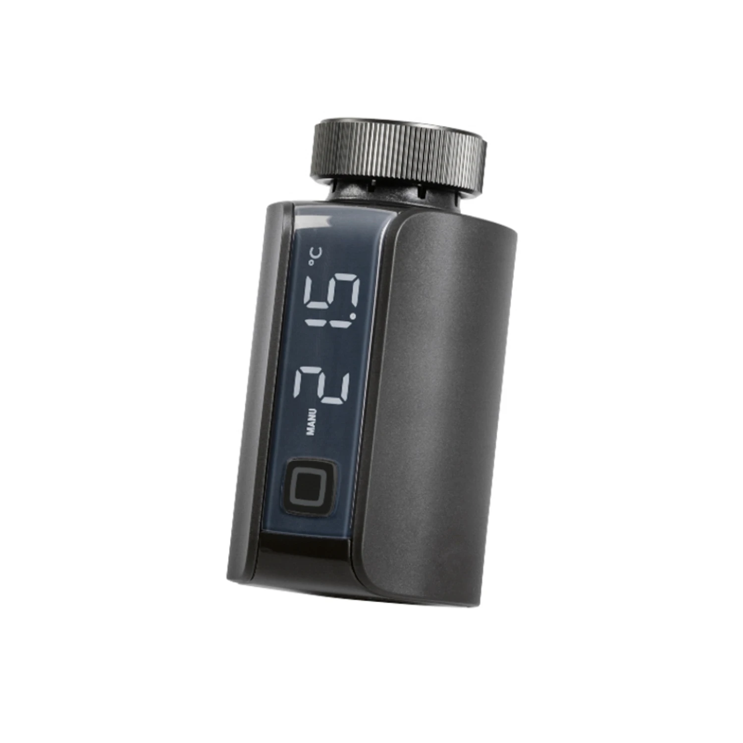 Das anthrazitfarbene Heizkörperthermostat Evo dient zur automatisierten Steuerung und Kontrolle der Raumtemperatur. Es ersetzt das herkömmliche Thermostat und ermöglicht eine komfortable Steuerung per App. Durch die kostenfreie Homematic-IP-App lassen sich individuelle Temperaturverläufe erstellen, so dass eine bedarfsgerechte sowie energiesparende Nutzung ermöglicht wird. Durch die Koppelung mit weiteren Komponenten wie dem Homematic-IP Fenster- und Türenkontakt wird zudem eine automatische Absenkung der Heiztemperatur und somit eine Energieersparnis von bis zu 33% ermöglicht. Der geräuscharme Betrieb ist besonders für den Einsatz in Schlafräumen von Vorteil.