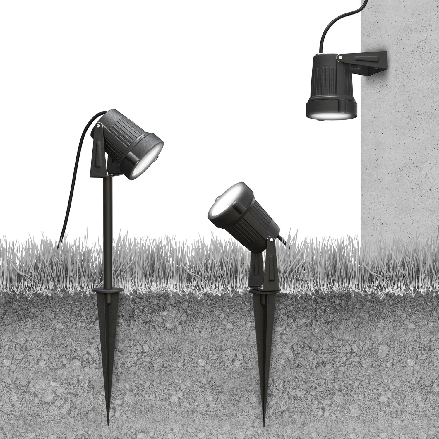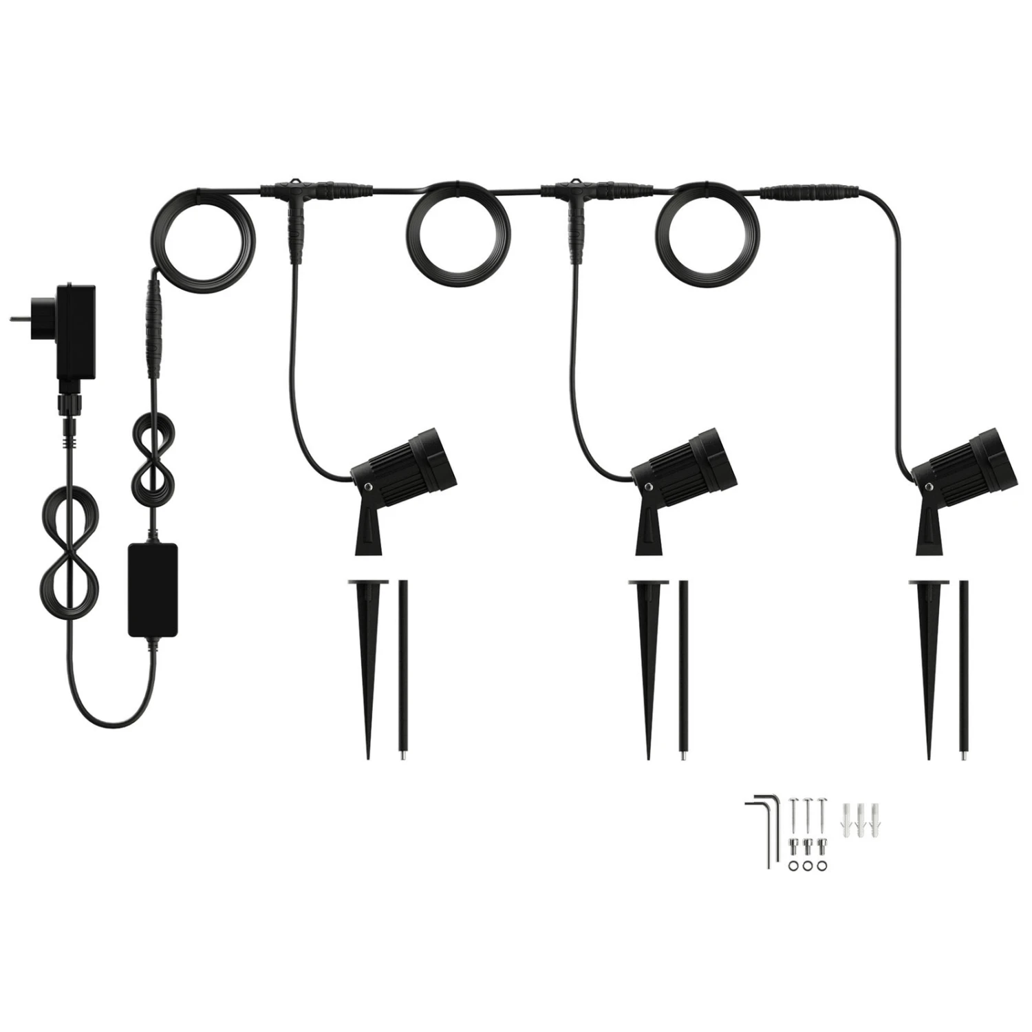 Die drei Strahler sind mit einem passenden Kabel miteinander verbunden, welches zwischen den Spots eine Länge von 2 Metern aufweist und somit für ausreichend Flexibilität in der Platzierung sorgt. Das System ist bequem erweiterbar auf bis zu maximal fünf Spots. Einzelne Strahler zur Ergänzung sind über das Zubehör erhältlich.