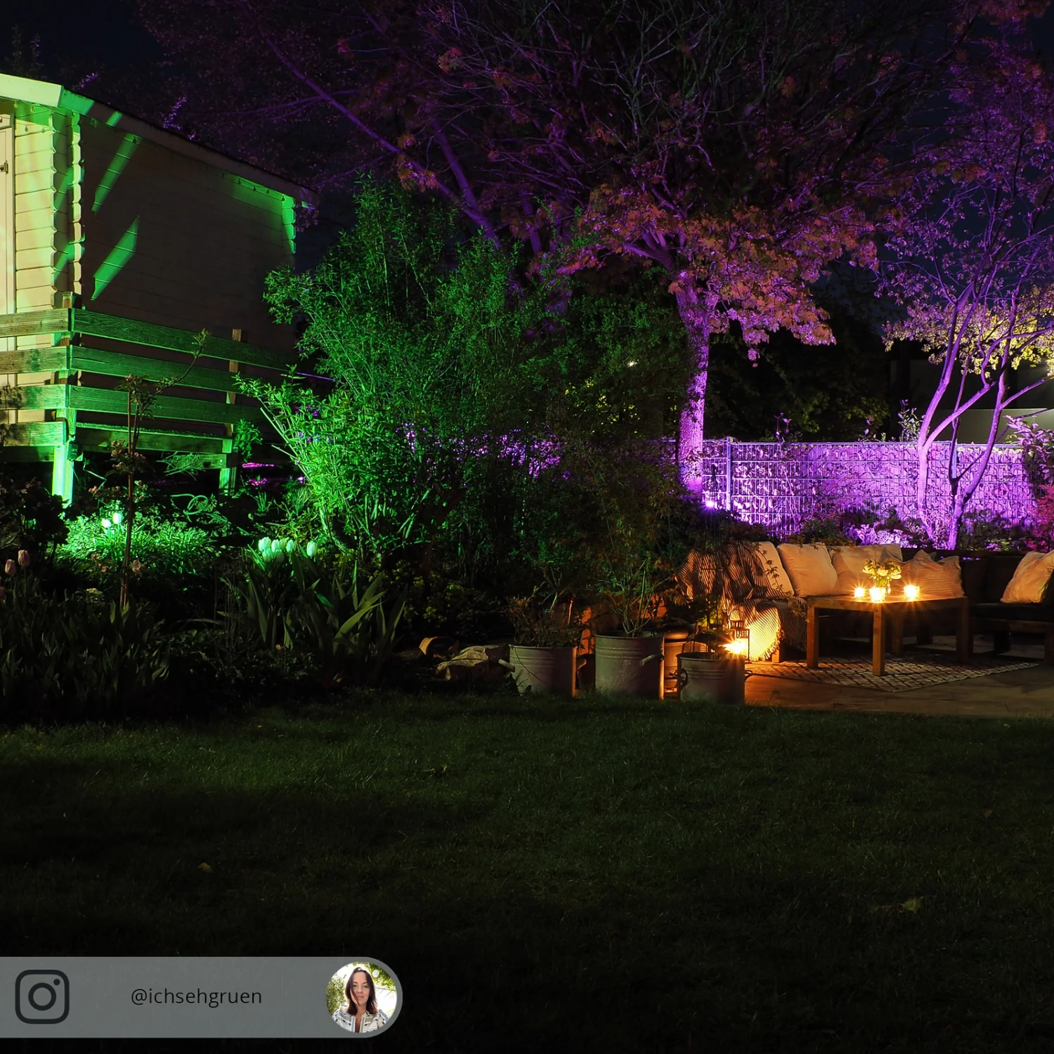 Smarte Beleuchtung auch für den Außenbereich – mit dem praktischen 3er Set des LED-Außenstrahlers Smart Outdoor von Innr wird der Garten farbenfroh. Die kleinen Strahler besitzen bewegliche Leuchtenköpfe, die individuell ausgerichtet werden können. So wird entweder ein spezielles Areal, eine Hecke oder auch ein Objekt gezielt beleuchtet, oder auch einfach eine moderne Wegebeleuchtung und Orientierung im Dunkeln geschaffen. Gleichzeitig können die Strahler auch an der Wand befestigt werden, was sie zu einer stimmungsvollen Lichtquelle, beispielsweise im Bereich des Balkons oder der Terrasse macht.