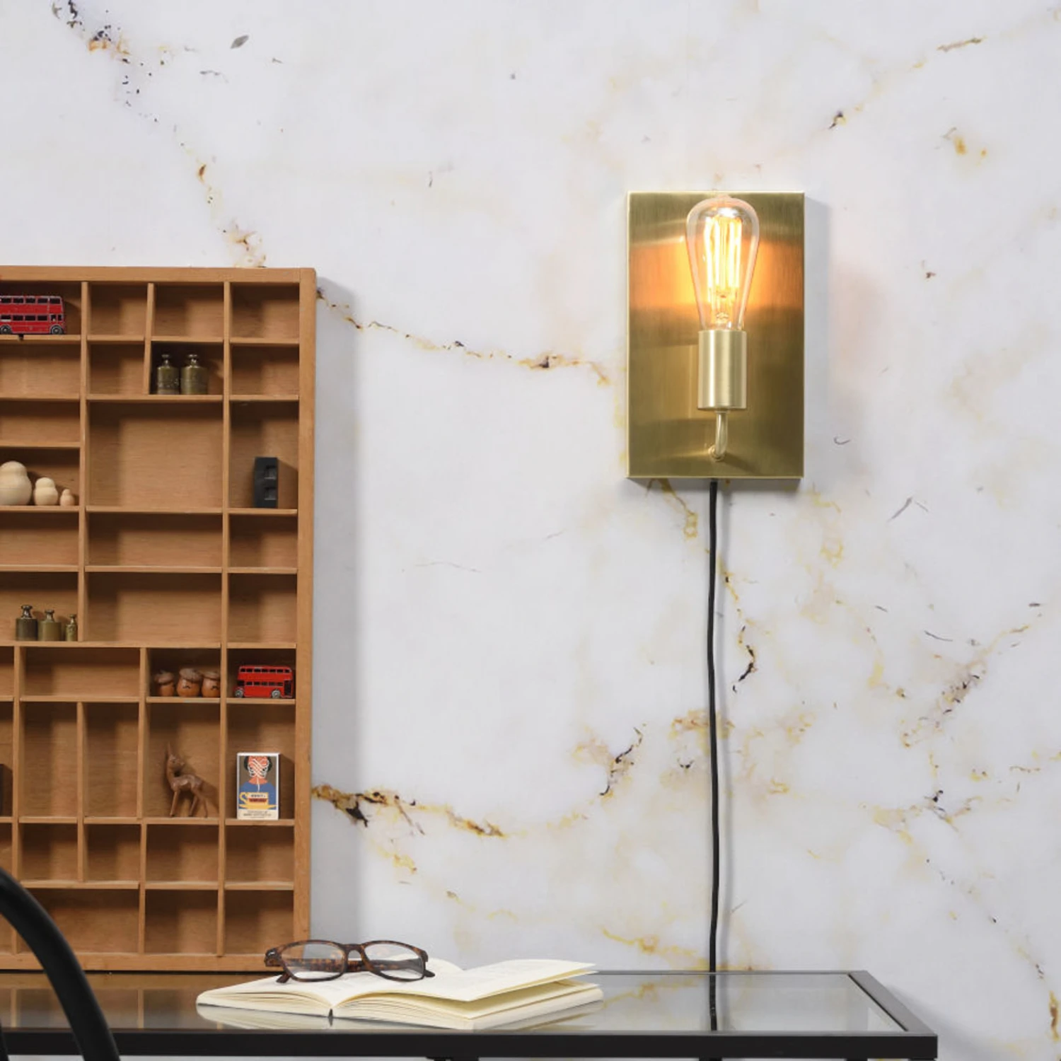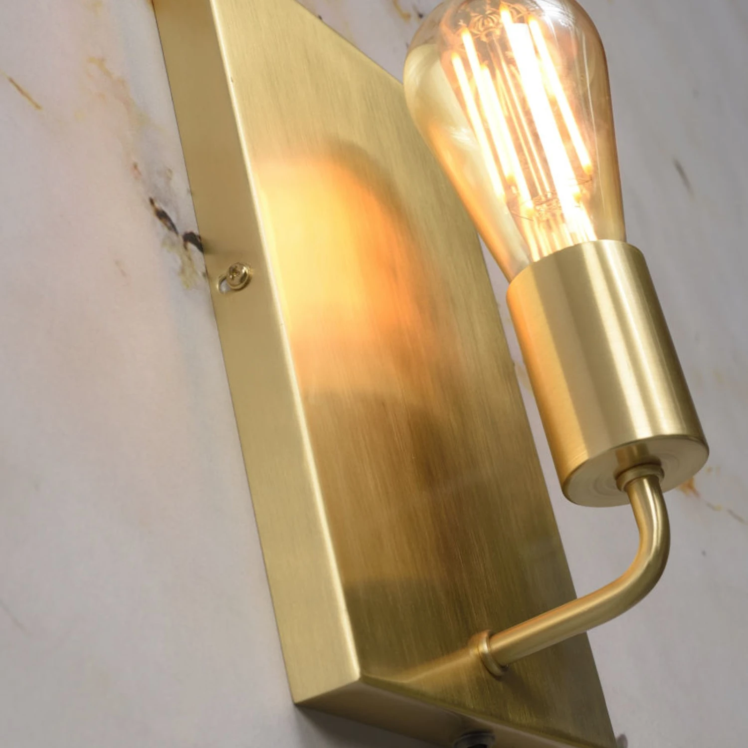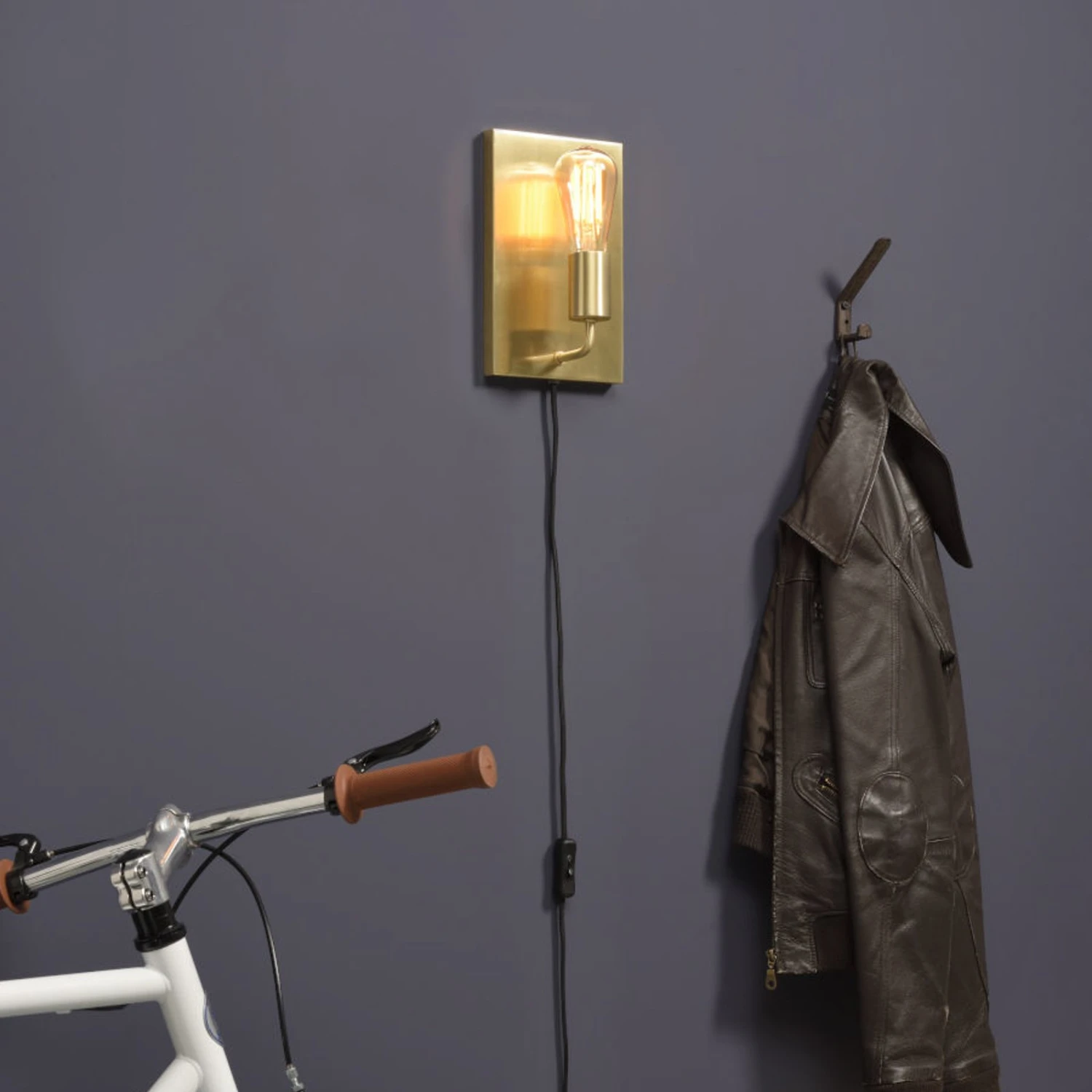 Die Wandleuchte Madrid ist schlicht gestaltet und es wurde auf einen Schirm verzichtet, wodurch das Leuchtmittel direkt sichtbar ist. Die eckige Wandplatte bietet die Basis für die nach oben gerichtete Fassung und ist in einheitlicher Farbe gehalten. Auf der Wandhalterung ist ein Schalter integriert, über den die Wandlampe direkt bedient werden kann. Der Anschluss erfolgt mithilfe des schwarzen Textilkabels.