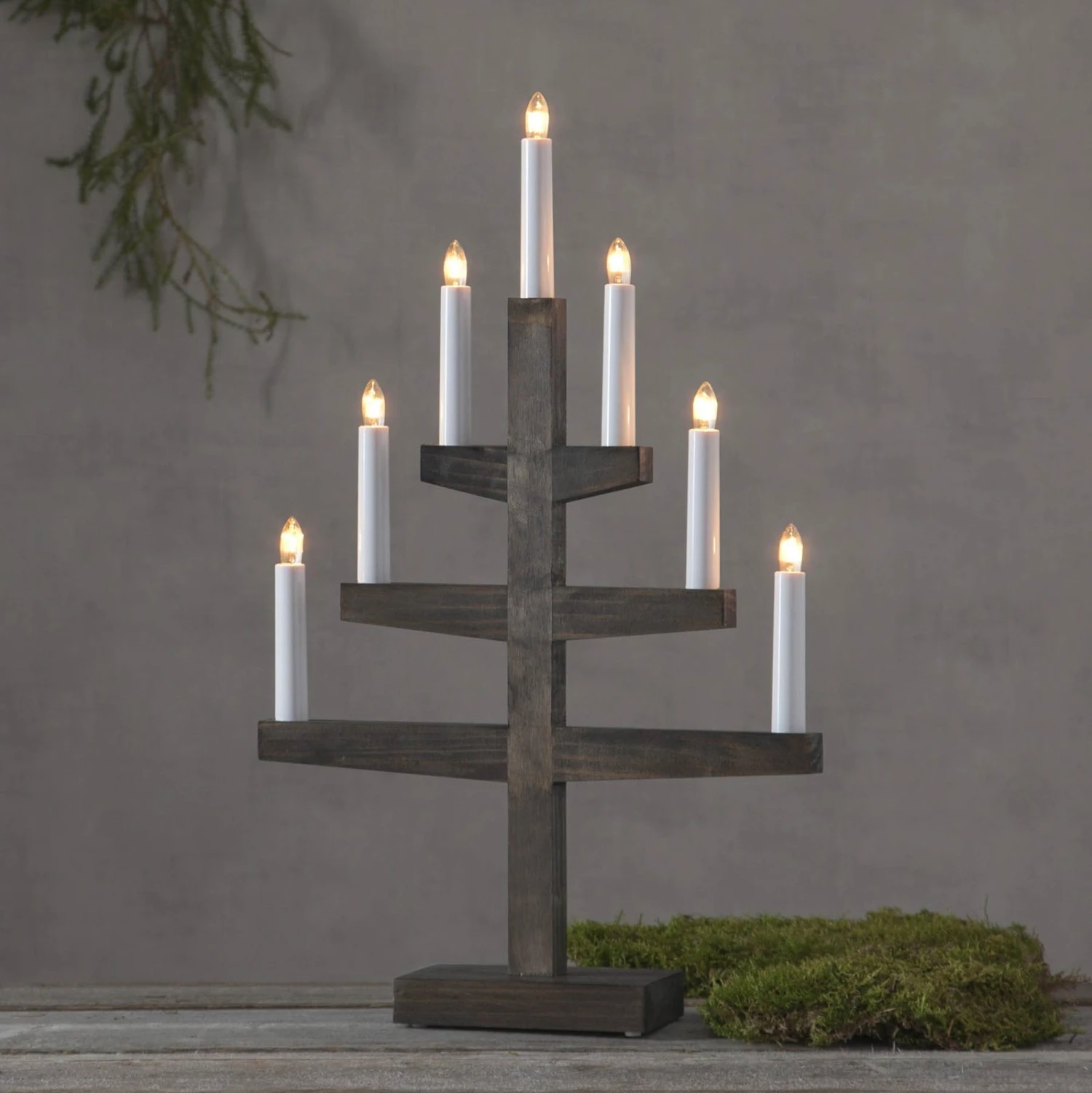 Für Liebhaber eines von der Natur inspirierten Wohnstils eignet sich dieser siebenflammige Kerzenleuchter Trapp als weihnachtliches Dekoaccessoire: Er ist aus Eichenholz gearbeitet, besticht mit zeitloser, gerader Form und sorgt im Handumdrehen für festliche Akzente auf dem Tisch. Auch als Fensterdekoration in der Weihnachtszeit sehr beliebt. Die Kerzenleuchten sind jeweils mit einer 3 Watt starken E10-Lampe bestückt, die stimmungsvolles Licht für ein gemütliches Ambiente abstrahlt.