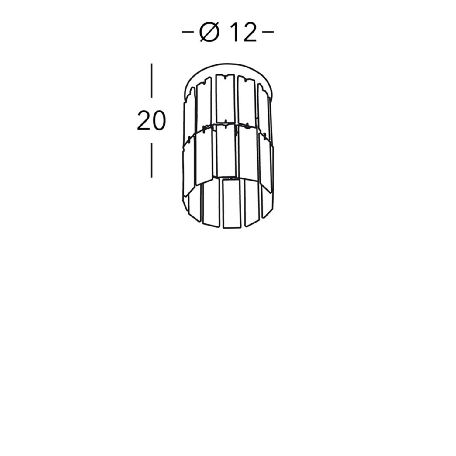 In zwei übereinander angeordneten Ringen bilden Kristall-Elemente einen Zylinder. Die Kristalle sind zu Prismen geschliffen, sodass das Licht teils reflektiert und teils in seine Spektralfarben zerlegt wird. Hinzu kommt der mit 24 kt-Gold belegte Deckenhalter, welcher eine zusätzliche, edle Farbnuance ins Spiel bringt.
