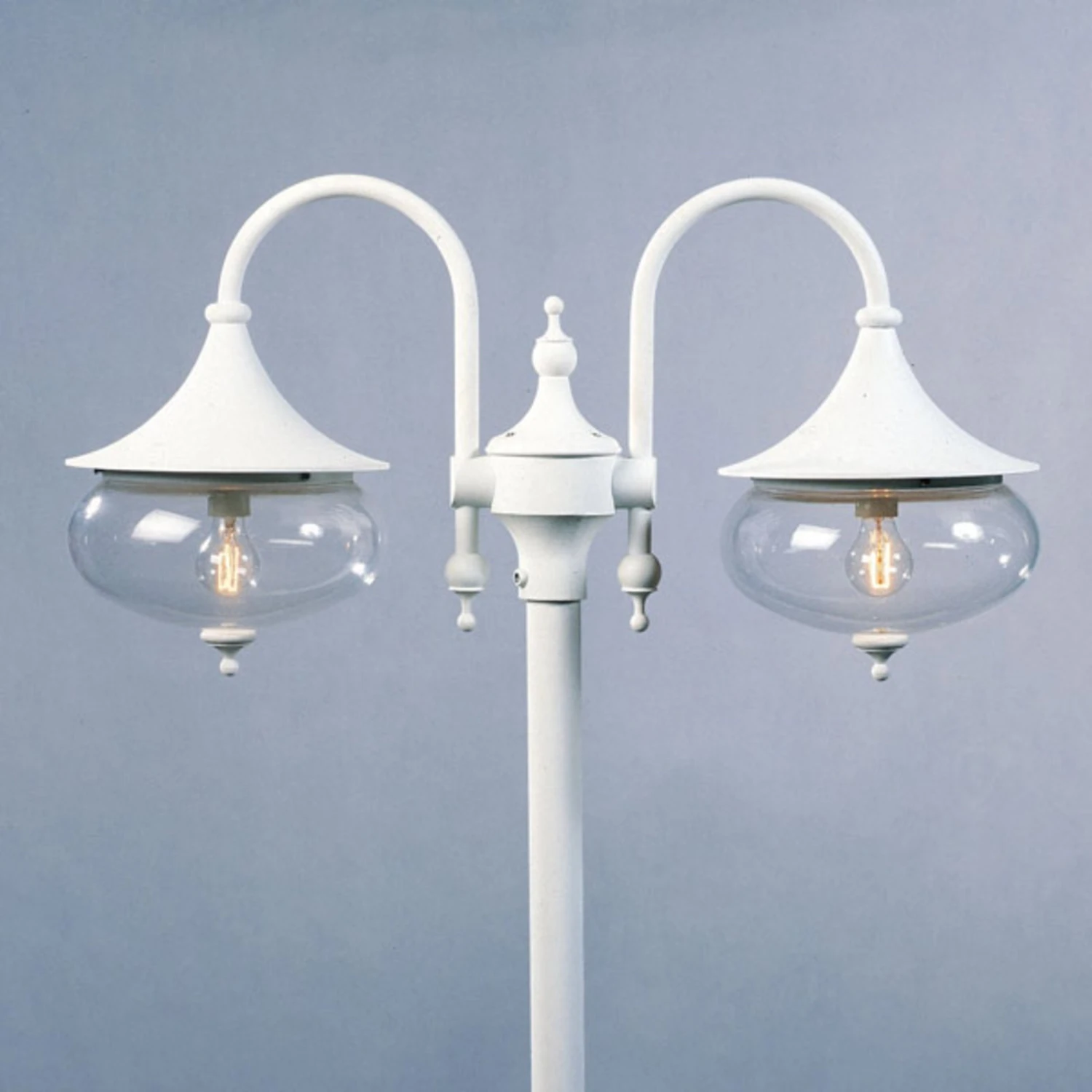 2-flammige Mastleuchte Libra aus Aluminium mit großen, klaren Acrylglasschirmen