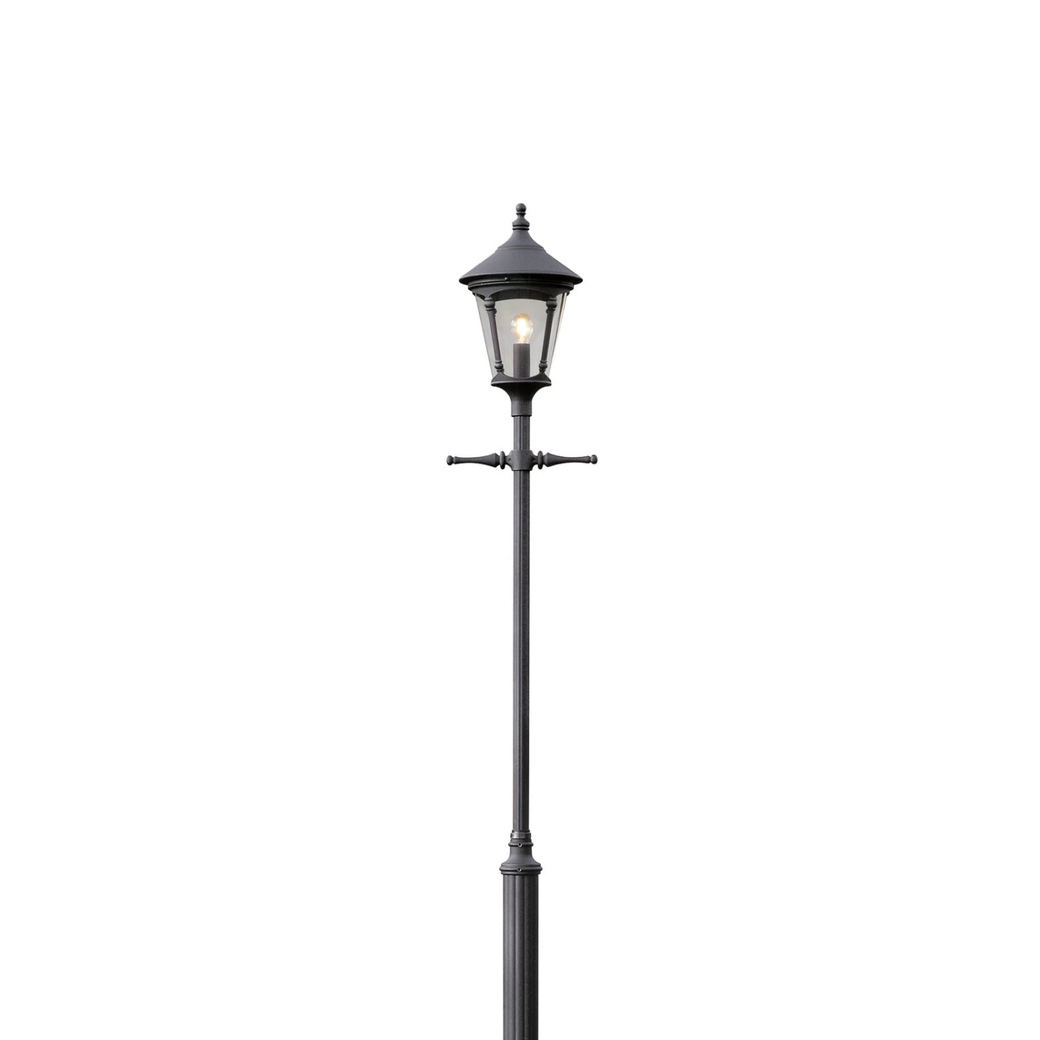 Klassische und formschöne Aluminium-Mastleuchte mit aufrecht stehender Laterne. Die Mastleuchte Virgo ist mit einer Leiterhalterung ausgestattet, wodurch das Auswechseln des Leuchtmittels und die Reinigung erleichtert werden. Inklusive Madenschrauben zur Befestigung des Kopfs, exklusive Bodenbefestigung für den Pfahl.