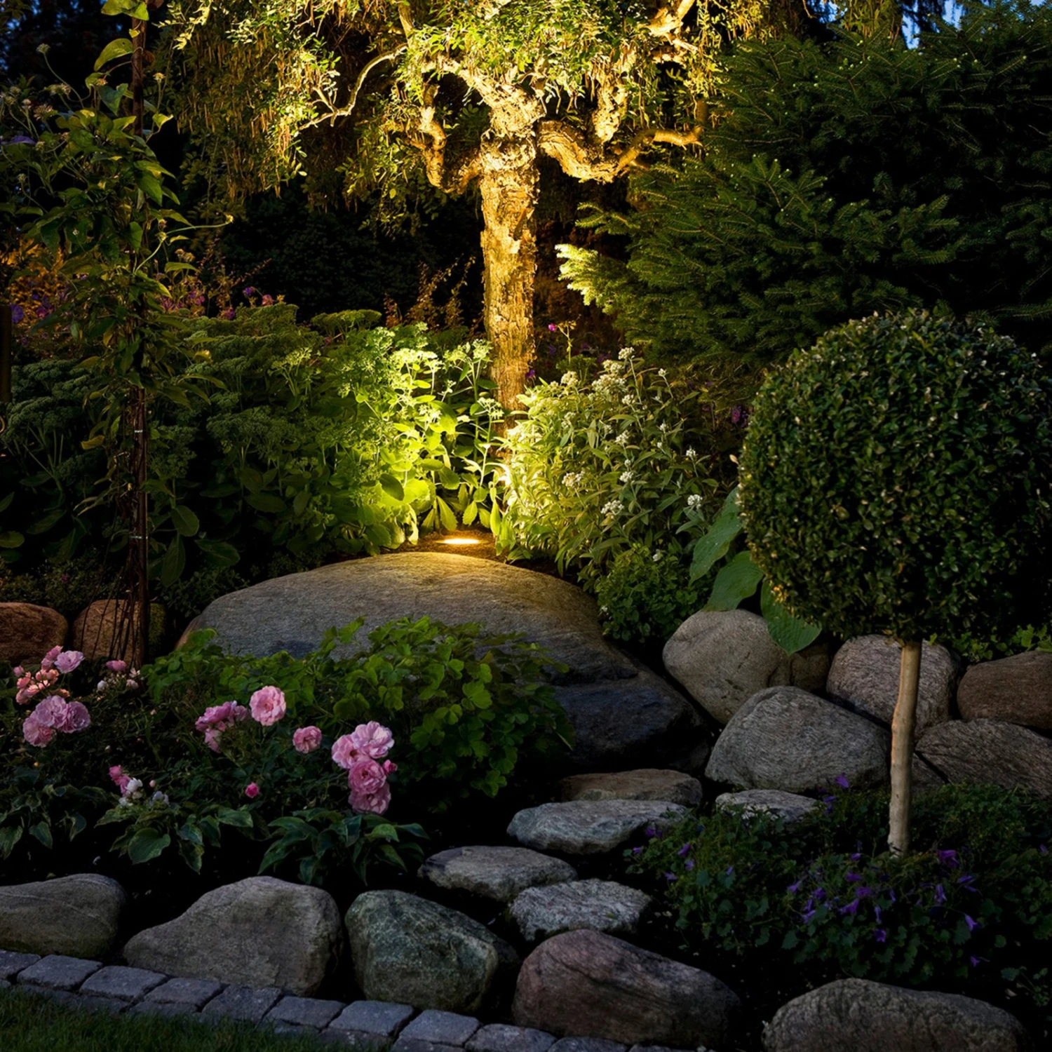 Tuva ist ein robuster LED-Bodeneinbauspot, dem dank Schutzart IP65 auch stärkere Regenfälle nichts anhaben können. Seitlich von Wegen oder Einfahrten in den Boden eingelassen, spendet er nicht nur ein hilfreiches Orientierungslicht, wenn man bei Dunkelheit nach Hause kommt, sondern sein warmweißer Lichtschein wertet auch das Haus optisch auf und wirkt stets einladen. Doch auch in anderen Bereichen des Grundstücks, beispielsweise in der Nähe der Terrasse oder in entfernter liegenden Ecken im Garten, macht Tuva einiges her, wenn er im Dunkeln hervorhebenswerte Punkte im Garten illuminiert.