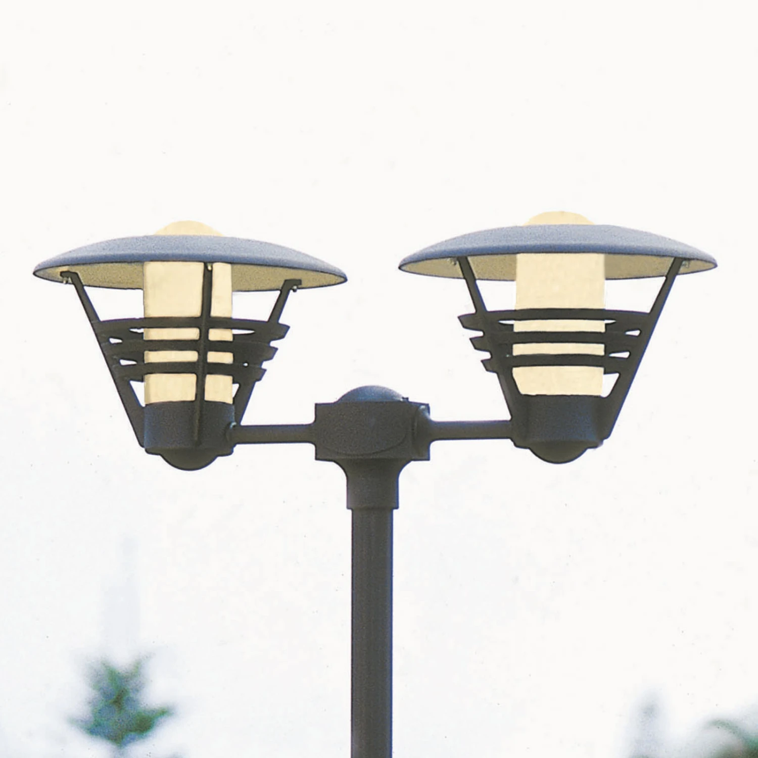 Auffällige Mastleuchte GEMINI mit zwei Schirmen