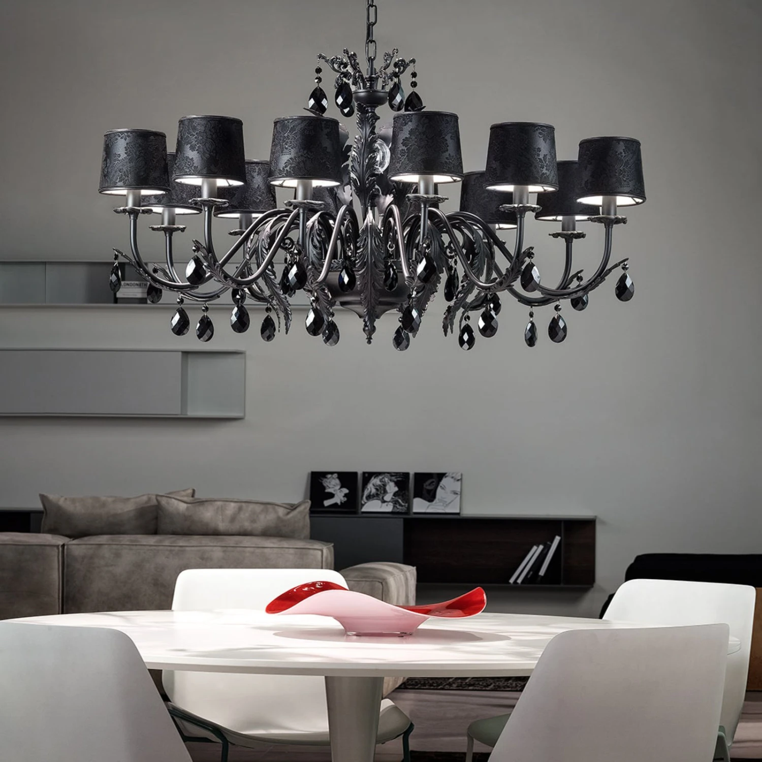 Mit Asfour-Kristallen und edlen Damastschirmen – schwarzer Kronleuchter Angelis
