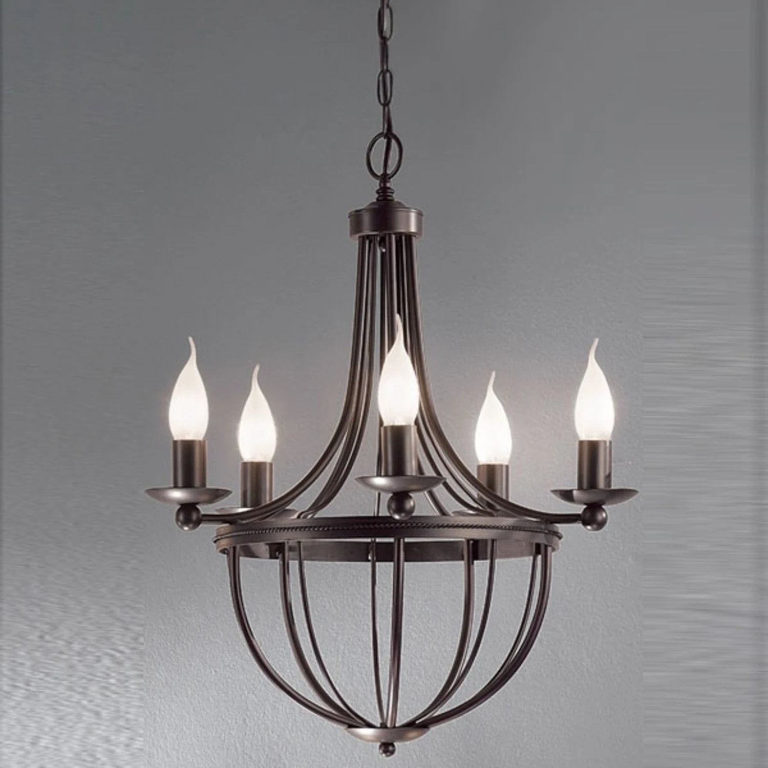 Rustikaler Kronleuchter AZIENDA mit elektrischen Kerzen