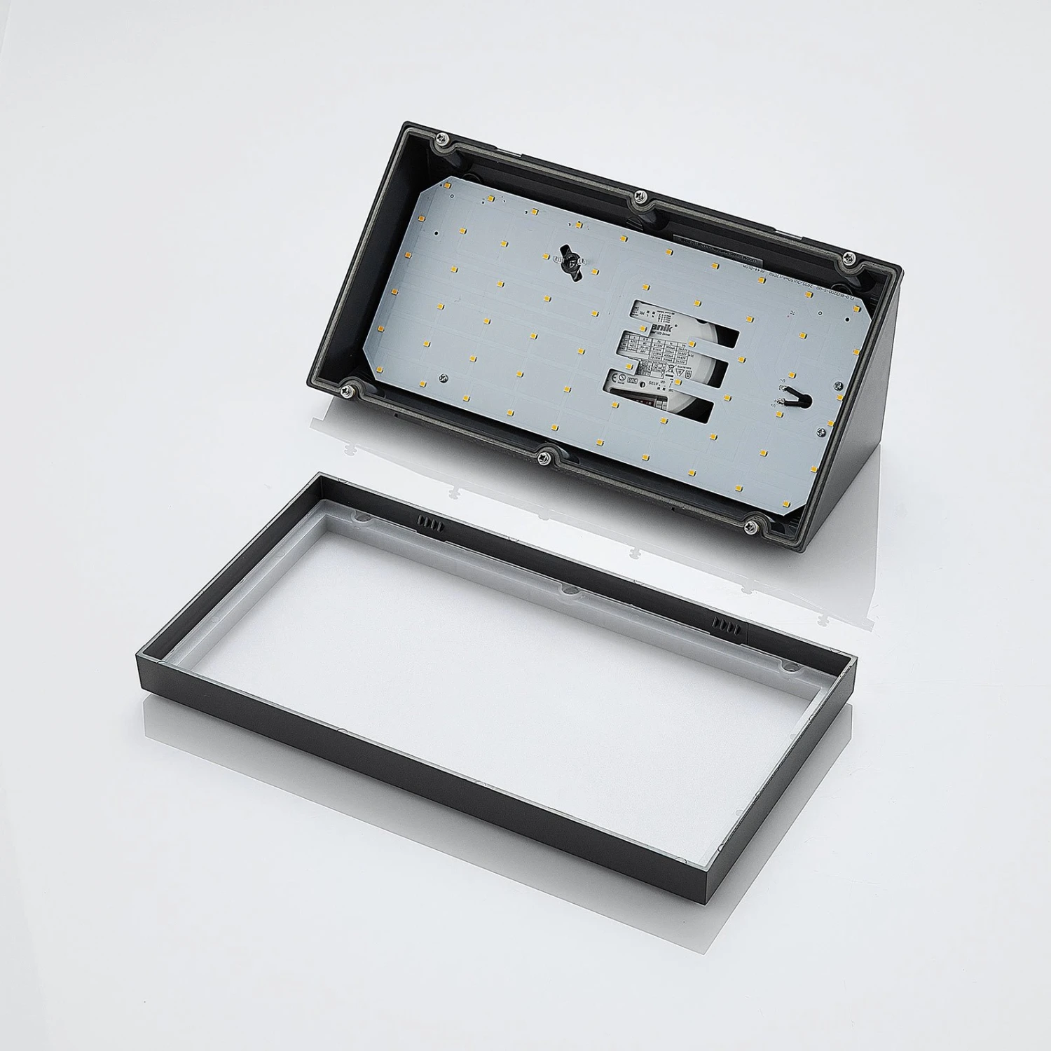 Die LED-Außenwandleuchte Abby ist schräg angeordnet und sie gibt ihr Licht nach unten ab. Dank der LED-Technik ist die Leuchtkraft hoch, obwohl der Energieverbrauch niedrig ist. Das Gehäuse ist robust und gut abgedichtet und kann ohne Probleme im Außenbereich eingesetzt werden. Außerdem ist Abby seewasserfest und kann auch dem raueren Klima in Meeresnähe gut trotzen, so dass man lange Freude an dieser dunkelgrauen Außenlampe hat. Dank eines Sensors schaltet sich die Leuchte immer dann ein, wenn das Licht auch benötigt wird.