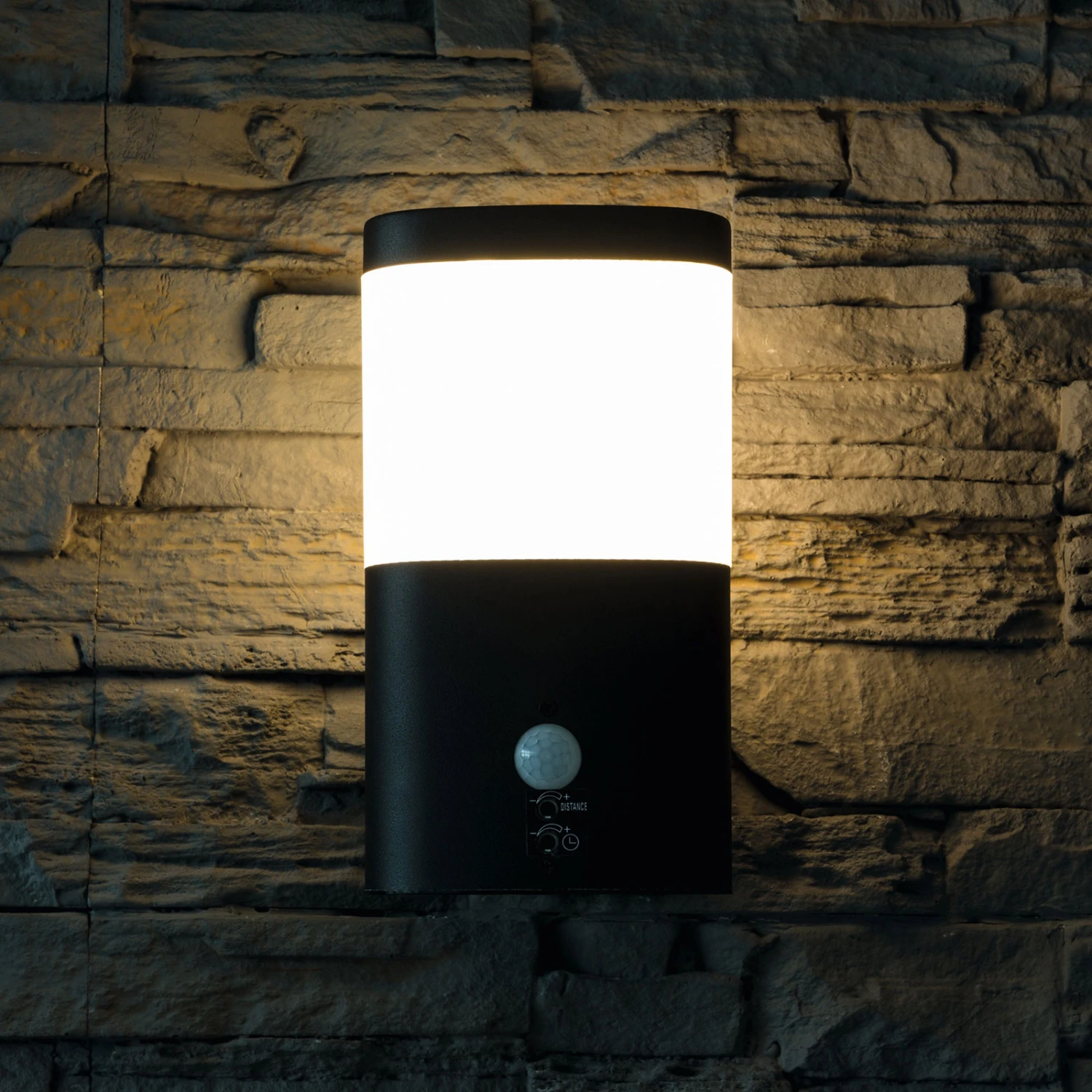 Ausgestattet mit einem Bewegungsmelder, ist die LED-Außenwandleuchte Camella prädestiniert für Hauseinfahrten und Wege. Der Sensor hat einen Erfassungswinkel von 90°. Der Bereich, in dem Bewegungen zur Auslösung führen, kann auf zwei bis sechs Meter eingestellt werden. Auch die Leuchtdauer lässt sich wählen; nachdem die Leuchte aktiviert wurde, spendet Camella je nach Einstellung von fünf Sekunden bis zu sechs Minuten Licht.