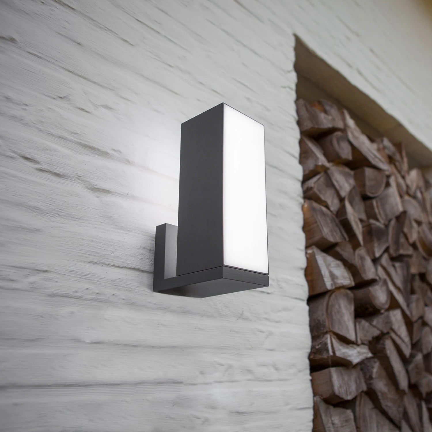 Der Quader der Außenwandleuchte Cuba aus Gussaluminium kann bis zu 90 ° in beide Richtungen gedreht werden. Durch die gegenüberliegenden Lichtflächen kommt dadurch eine eher indirekte oder direkte Beleuchtung zu Stande. Ebenfalls einstellbar ist auch die Lichttemperatur sowie die Helligkeit durch die smarte Ansteuerung mittels der LUTEC-App und einem mobilen Endgerät. Mit Hilfe der Bluetooth-Verbindung und der App lassen sich Leuchtengruppen bilden. So können beispielsweise kompatible Smart-Home-Leuchten im Außenbereich zu einer bestimmten Uhrzeit automatisch eingeschaltet werden.