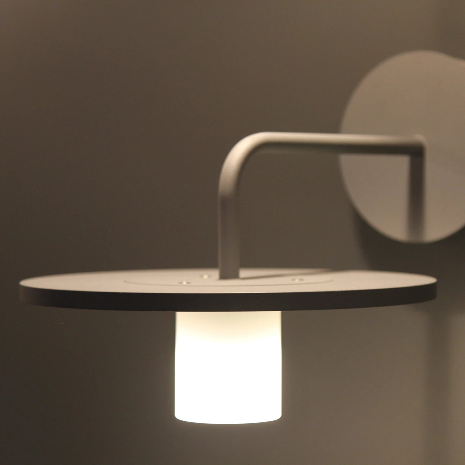 Die in Barcelona ansässigen Designer Jordi Veciana und Skye Maunsell schufen die Leuchtenserie Montoya als moderne, reduzierte Interpretation klassischer Außenleuchten. Die LED-Außenwandleuchte ist aus Aluminium gearbeitet und setzt sich aus einer runden Wandbefestigung, einem nach unten geneigten Ausleger und einem flachen, runden Schirm zusammen. Letzterer ist an der Unterseite mit einem sandgestrahlten Glasdiffusor ausgestattet, der eine warmweiße LED-Lichtquelle beherbergt.