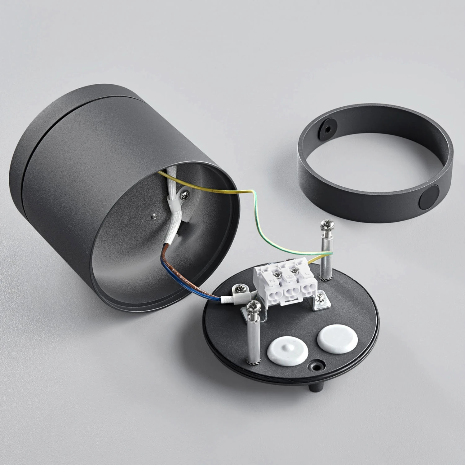 Die LED-Außendeckenleuchte Negro ist durch die Schutzart IP65 hervorragend für den Außenbereich geeignet. Die Leuchte besteht aus einem graphitfarbenen Aluminiumgehäuse mit matter Lichtaustrittsfläche. Dadurch ist sie besonders in Kombination mit weiteren Deckenleuchten zur Akzentbeleuchtung geeignet.