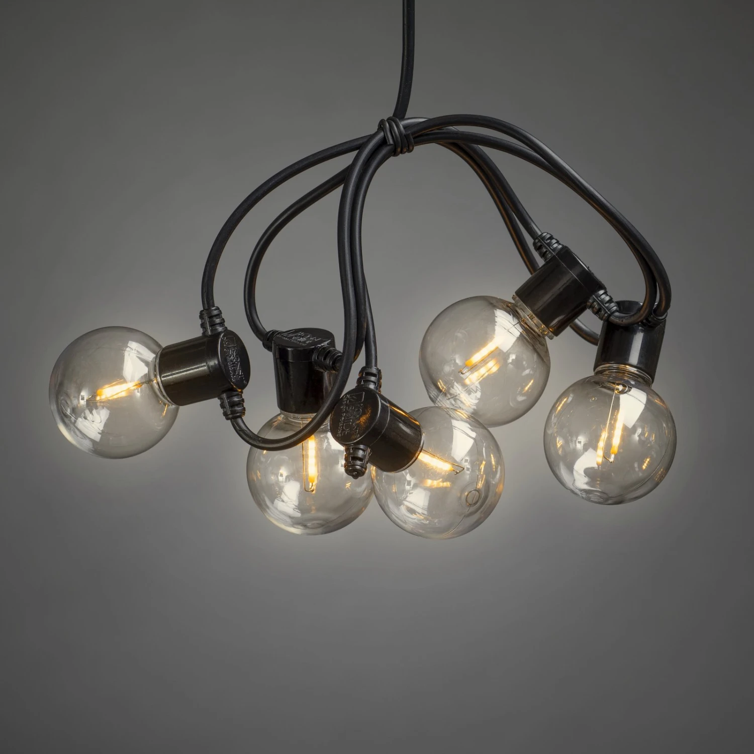 Mit dieser LED-Lichterkette mit den attraktiven Leuchtmitteln in Glühfadenoptik lassen sich überall im Außenbereich stimmungsvolle Dekoideen umsetzen. Besonders auffällig wirkt der gemütliche Charakter der Lichtabstrahlung der bernsteinfarben leuchtenden LEDs. Ein Netzanschluss in der Nähe ist nicht erforderlich, da die LED-Lichterkette mit Batterien bestückt wird: 4 x AA (nicht inklusive – über Zubehör erhältlich). Mit integriertem 6-Stunden-Timer.
