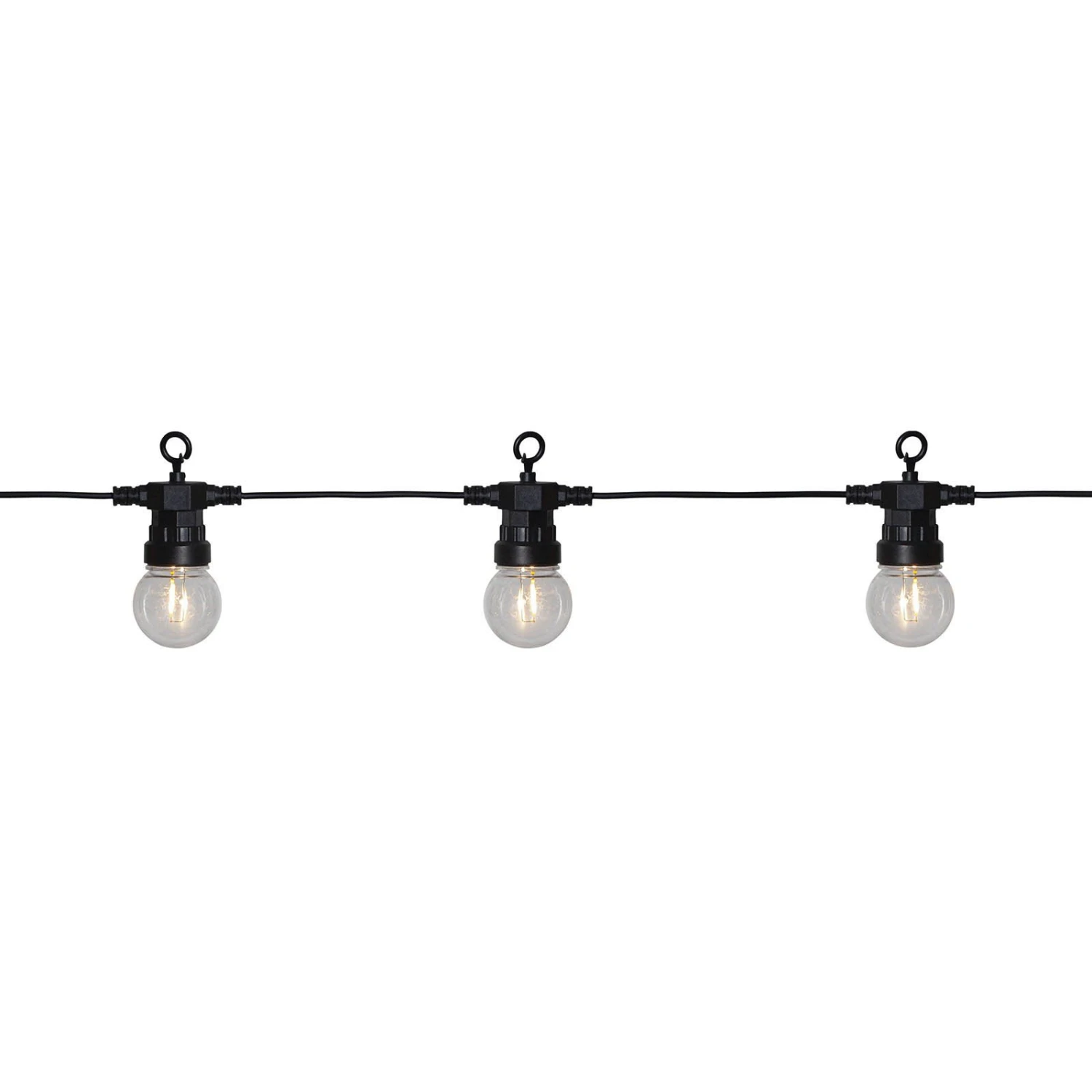 Die LED-Lichterkette Small Circus Filament besteht aus einem langen Zuleitungskabel und einer Lichterkette mit 20 Brennstellen. Jede Lampe ist wie eine Filament-LED aufgebaut und erzeugt ein schwaches, dekoratives Licht. Egal ob im Garten, in einem Baum oder auf der Veranda. Die LED-Lichterkette Small Circus Filament erzeugt eine harmonische Beleuchtung für lange Sommerabende im Freien. Sie ist einfach zu montieren und dank des langen Kabels auch mit Abstand zum Haus an einer Gartenhütte oder einem Freisitz verwendbar.