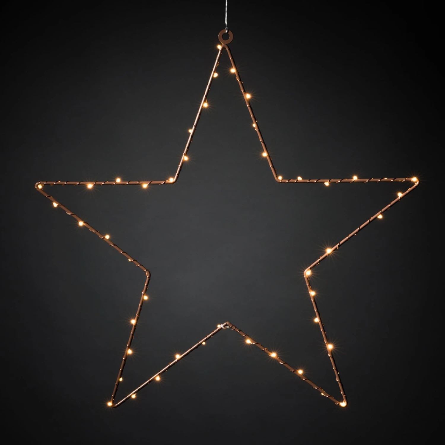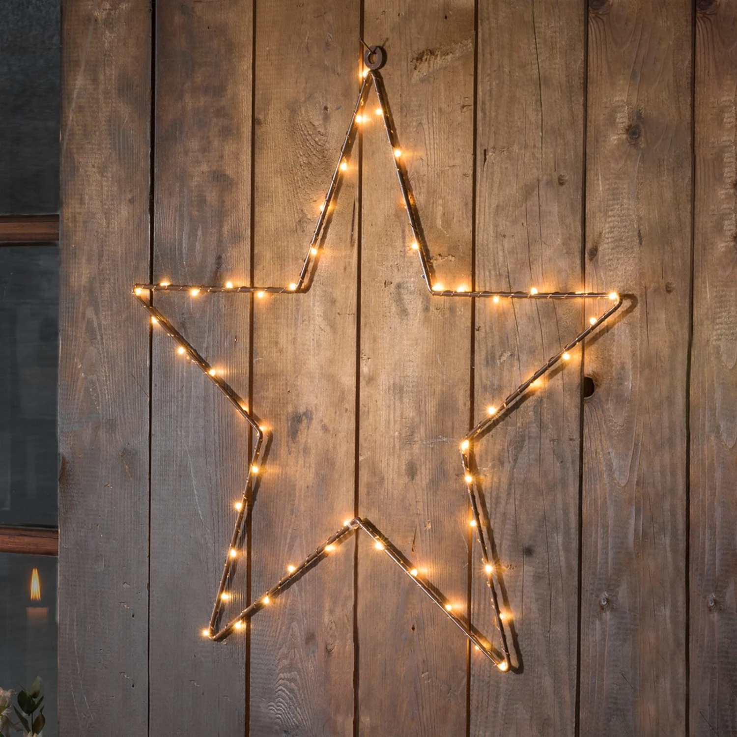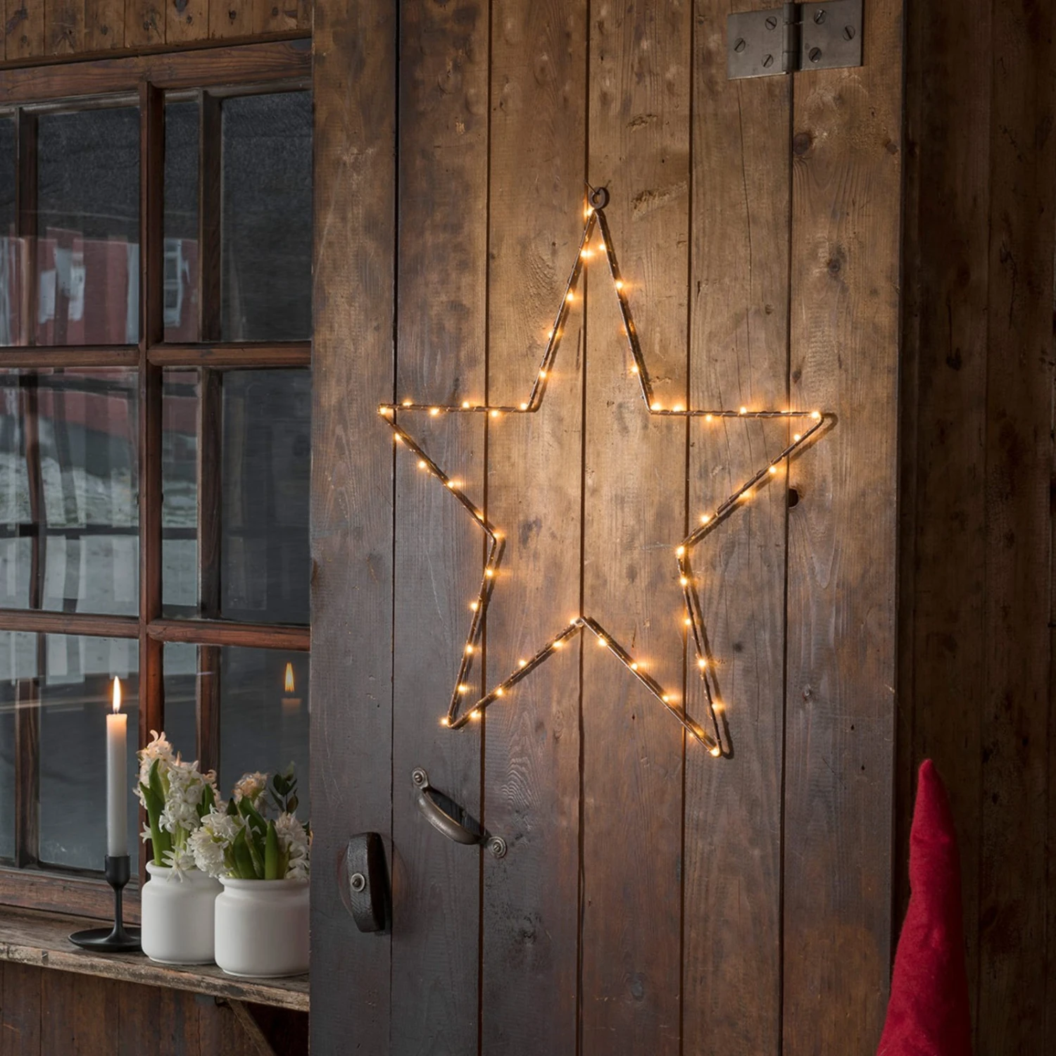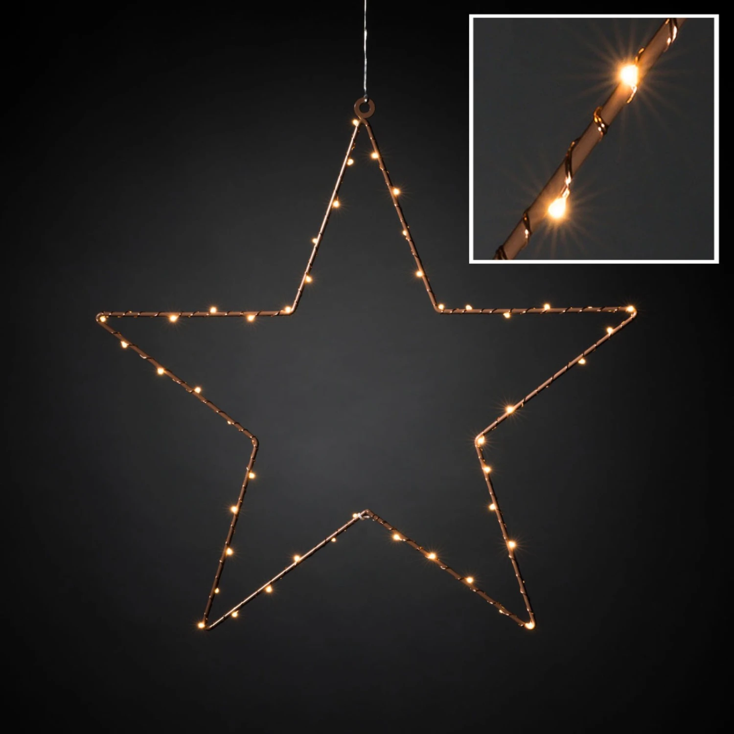 Der LED-Metallstern ist mit Draht umwickelt und rundherum mit LEDs bestückt, die mit ihrem weichen, bernsteinfarbenen Licht sowohl den Stern selbst als auch die Umgebung wundervoll illuminieren. Ein Dekorartikel für die Weihnachtszeit, der als Fenster- oder Wandschmuck eingesetzt werden kann.